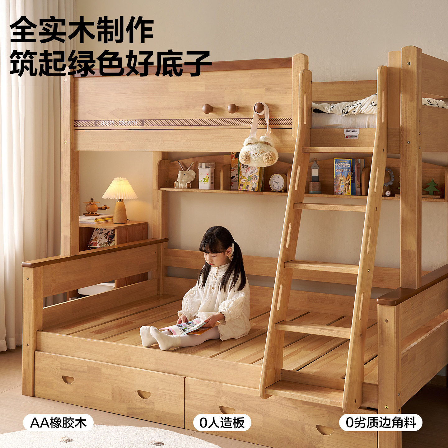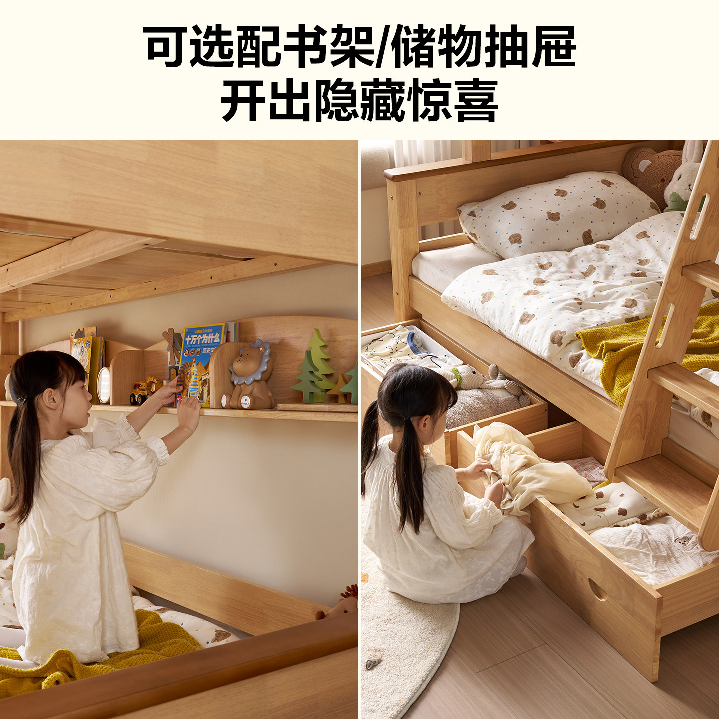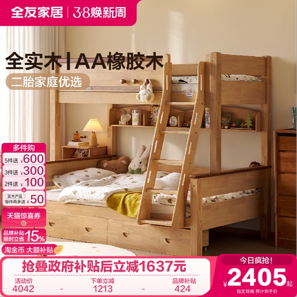 全友家居原木风实木儿童床小户型卧室上下床双层床高低床2026新款