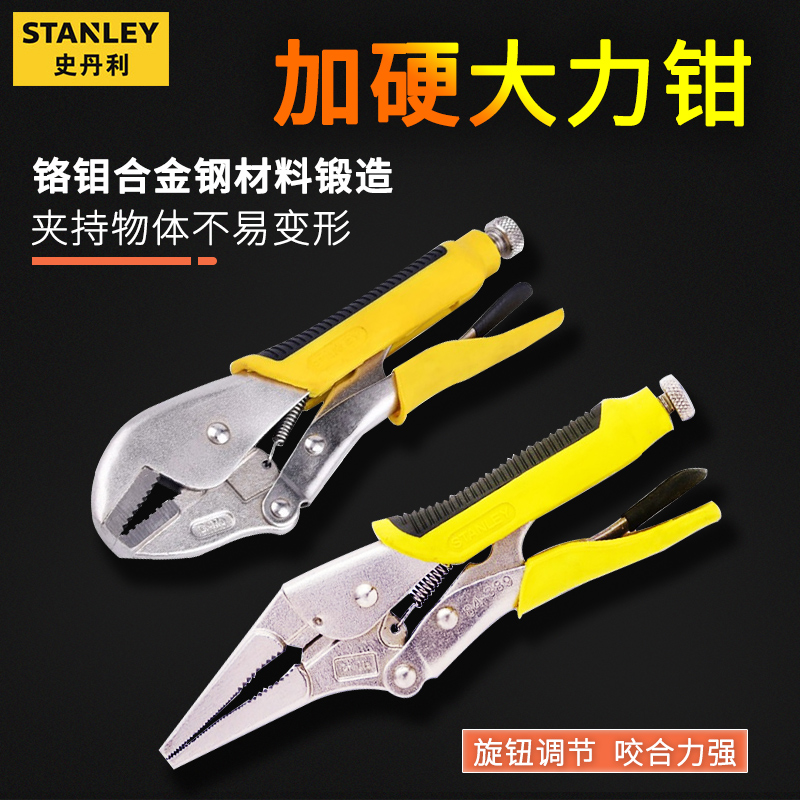 史丹利水管大力钳子工业级C型弧齿直齿多功能压力夹钳冰箱封口钳