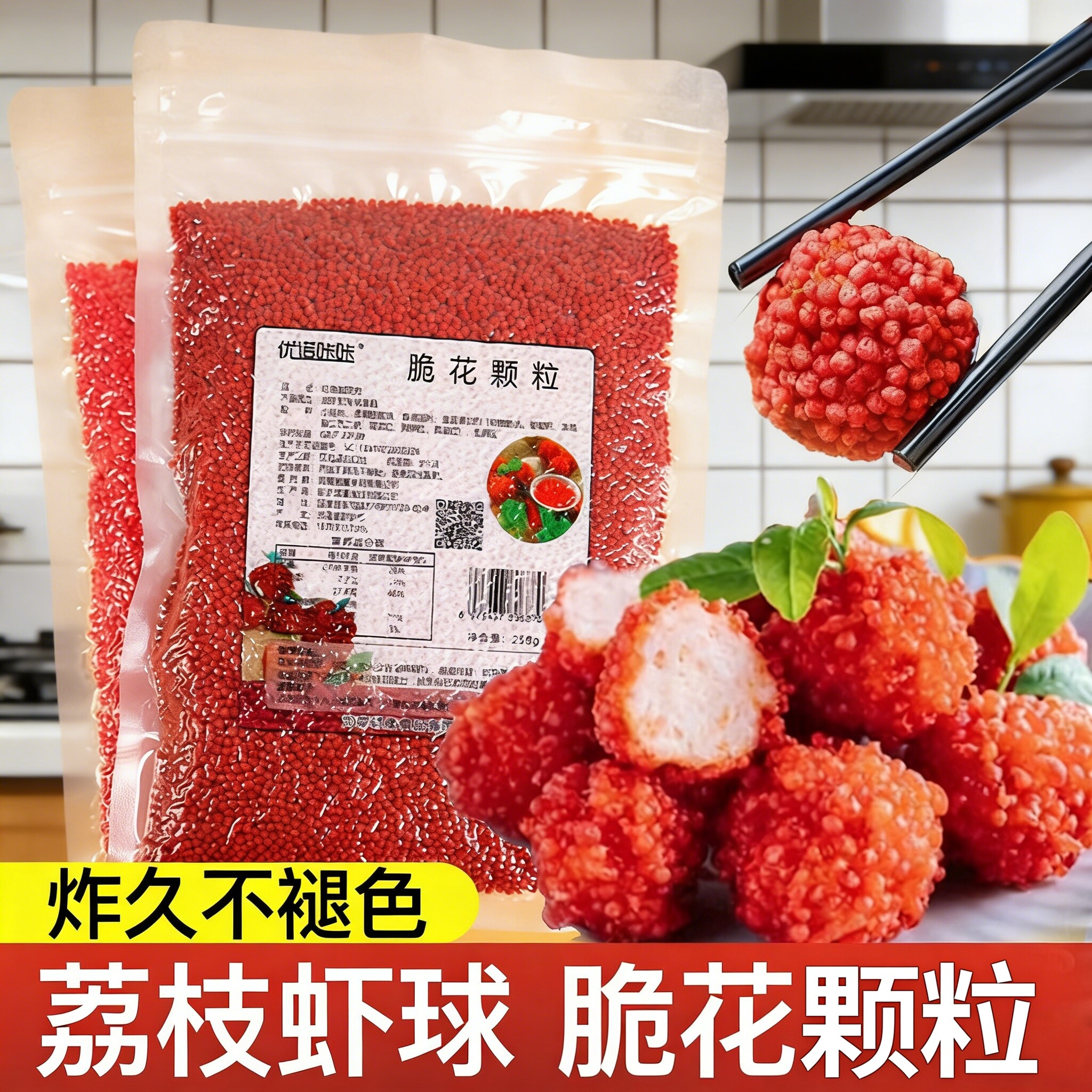 网红脆花颗粒红色荔枝虾球翠花脆米粒油炸彩色黄色妃子笑制作原料