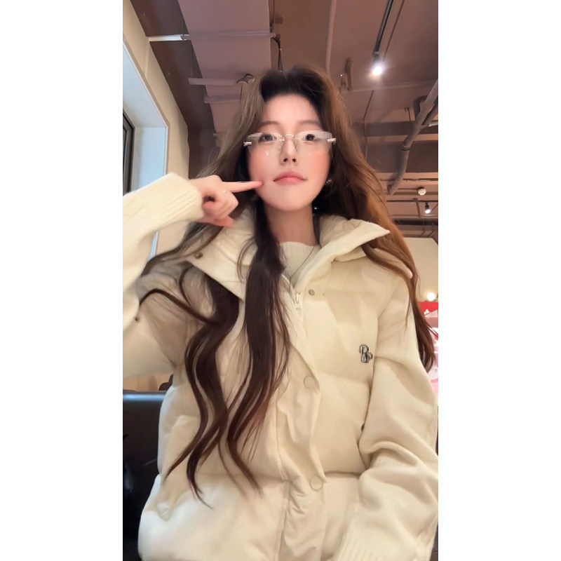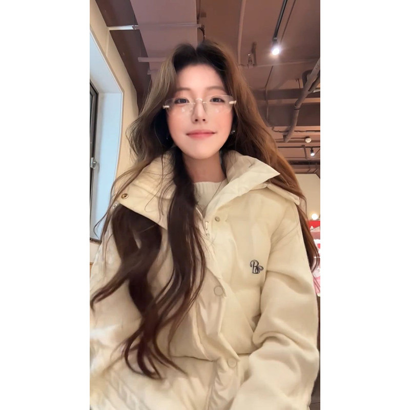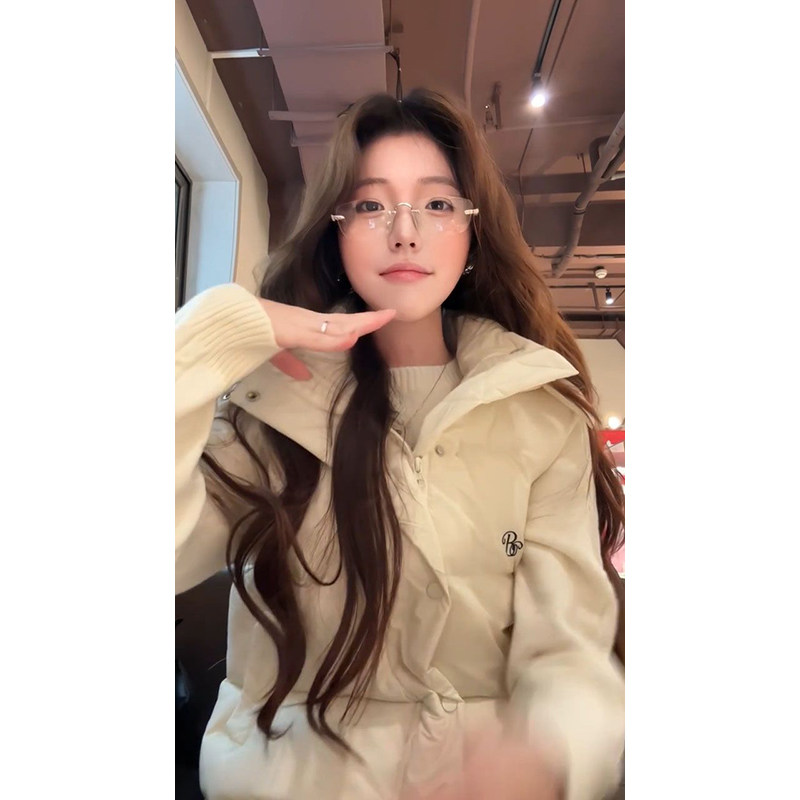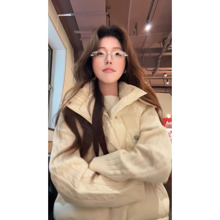 韩式休闲学院风杏色软糯麻花针织毛衣搭配连帽马甲棉服外套两件套
