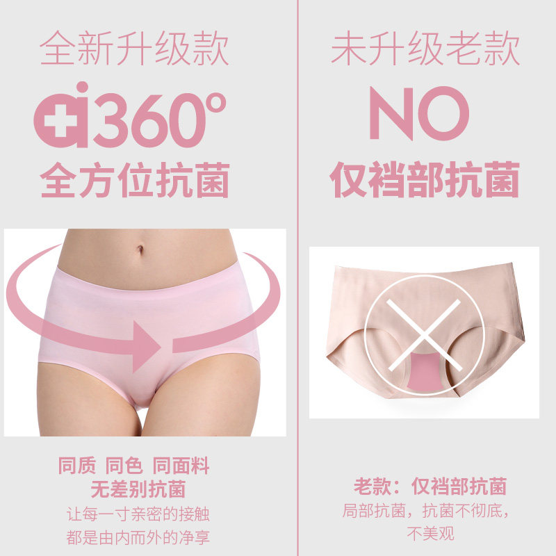 埃凯尔一片式透气女无痕内裤 细兰精莫代尔女士银离子三角裤