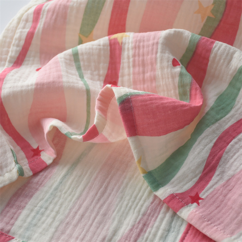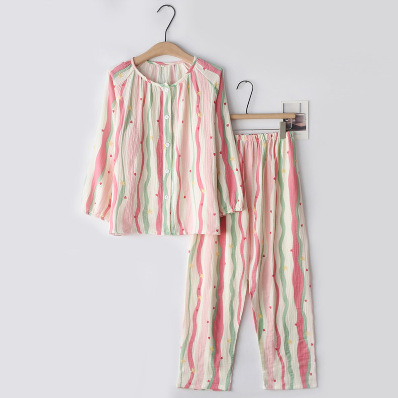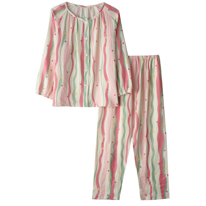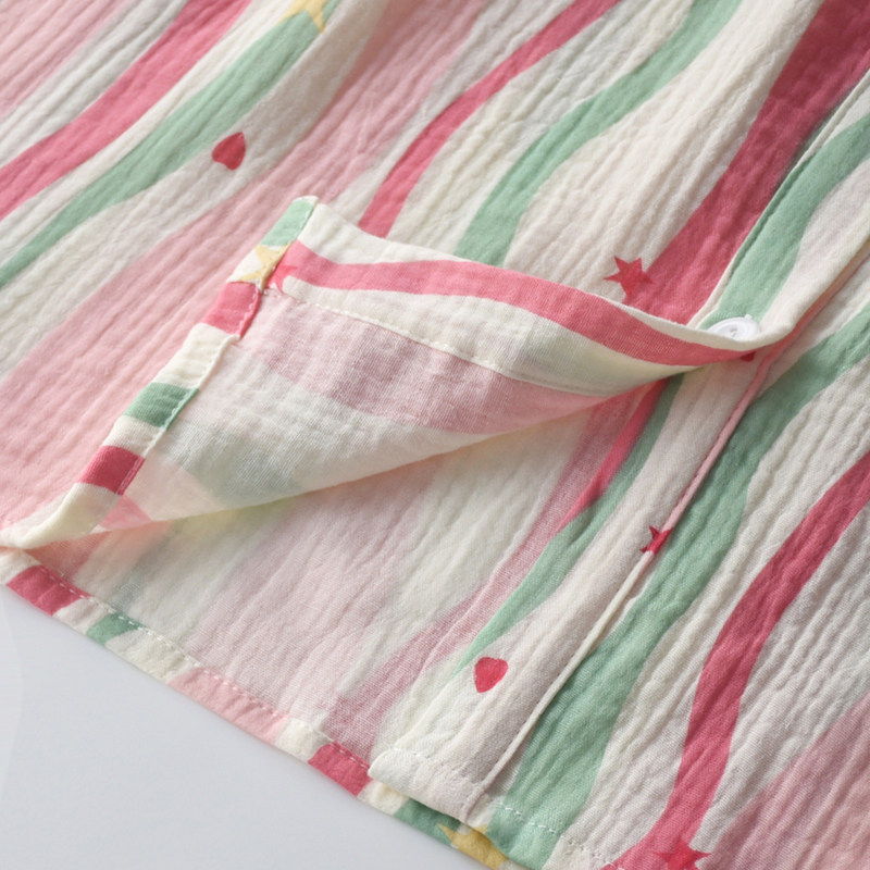 女纯棉纱布多巴胺条纹春夏睡衣