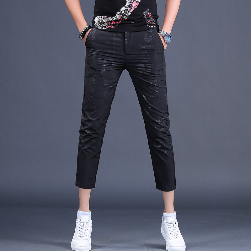 夏季男士九分裤潮流系皮带休闲裤英伦风男生修身显高八分裤七分裤