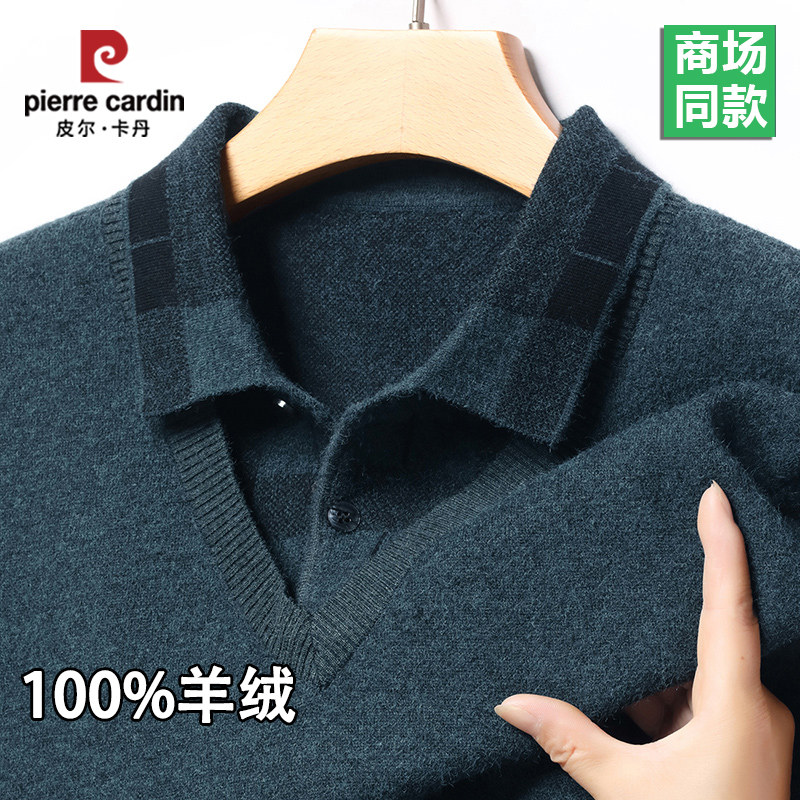 皮尔卡丹100%羊毛衫假两件毛衣男士冬季加厚保暖羊毛衫针织打底衫