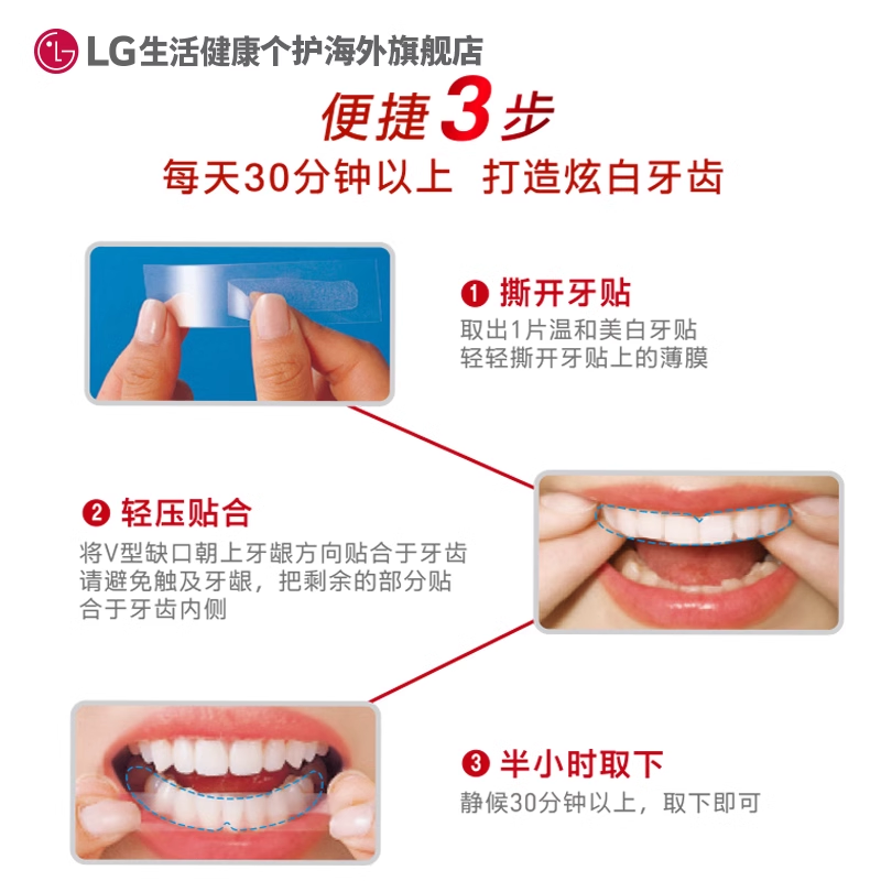 【侯佩岑推荐】LG倍瑞傲/Claren美白牙贴去黄洁白温和不酸8片*3盒