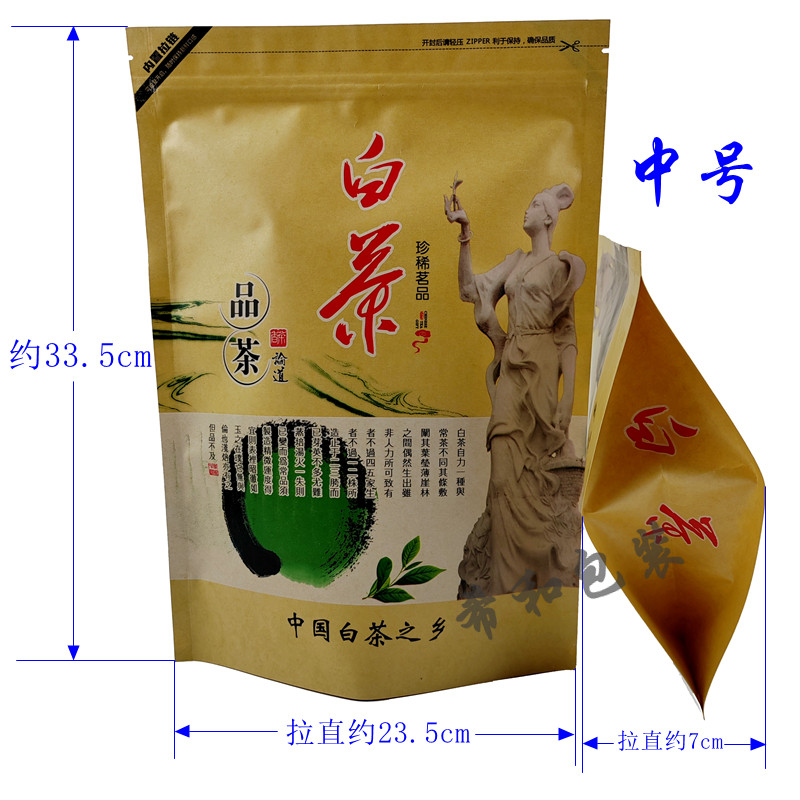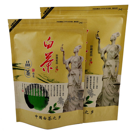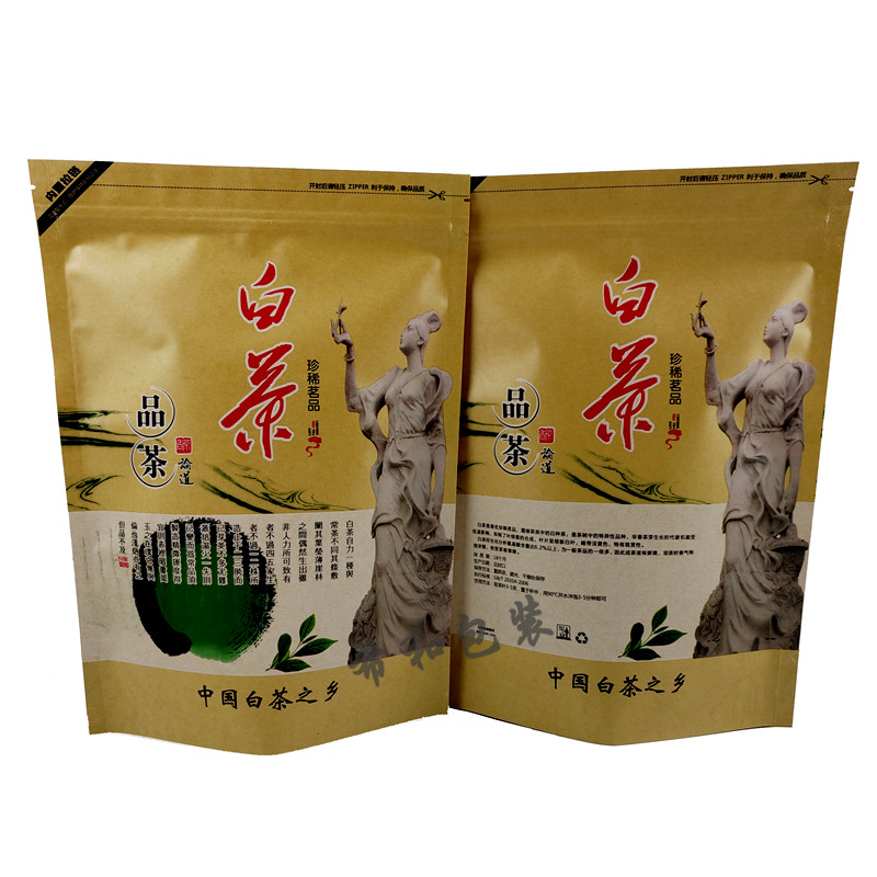 牛皮纸铝膜通用白茶包装袋250g500g自封口半斤1斤安吉白茶礼品袋