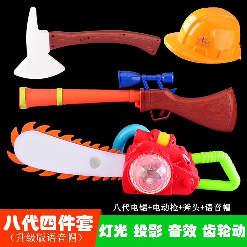 光头强电锯玩具砍树工具锯子伐木装备电动投影枪套装3岁儿童玩具