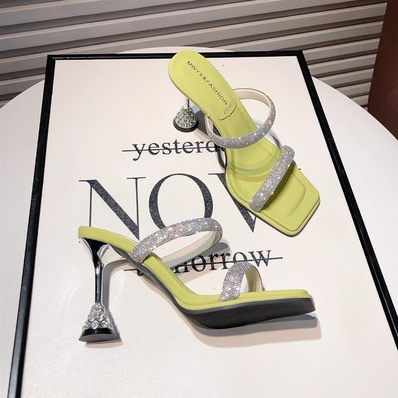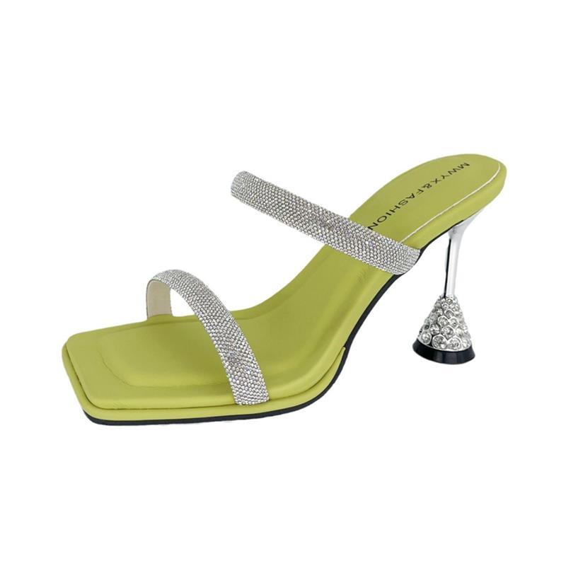 2024时尚凉拖一字粗跟新款夏季中跟拖鞋网红出女外穿凉鞋水钻鞋