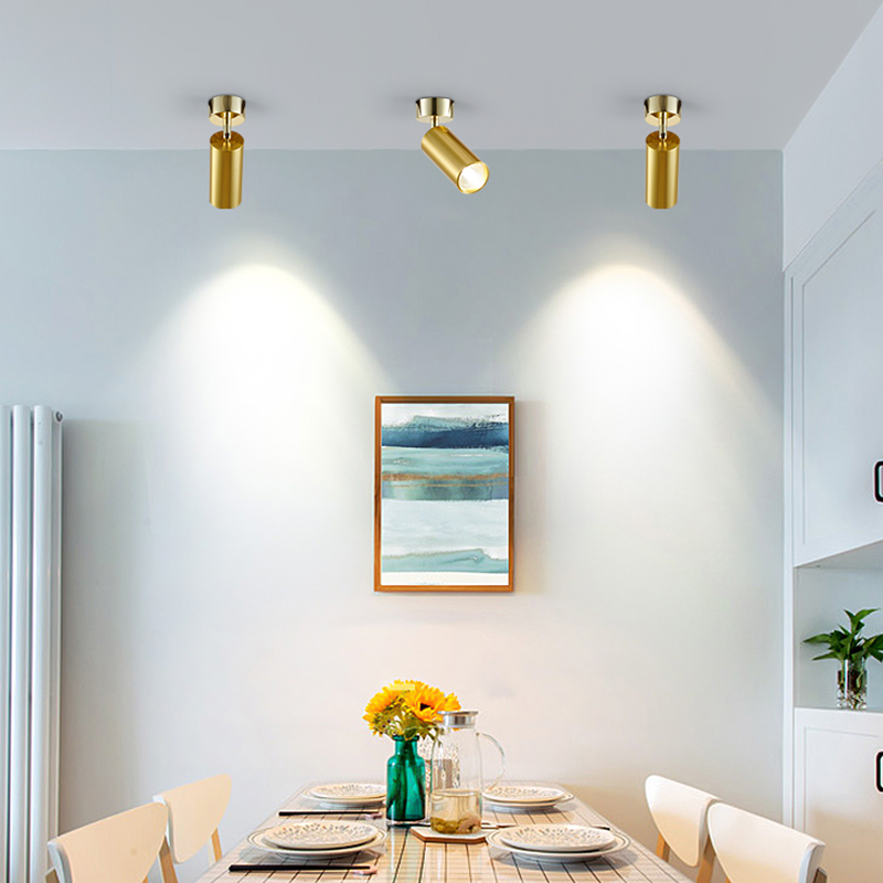 明装射灯可调角度家用背景墙吸顶式聚光照画全光谱单个小金色射灯