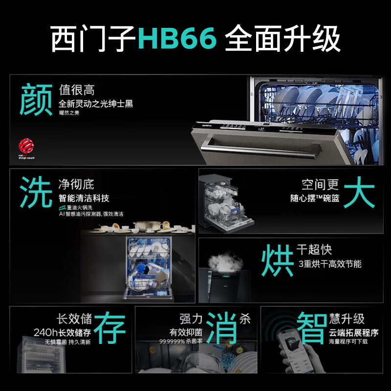 西门子洗碗机家用全自动12套嵌入式消毒柜一体灶下大内腔新款HB66
