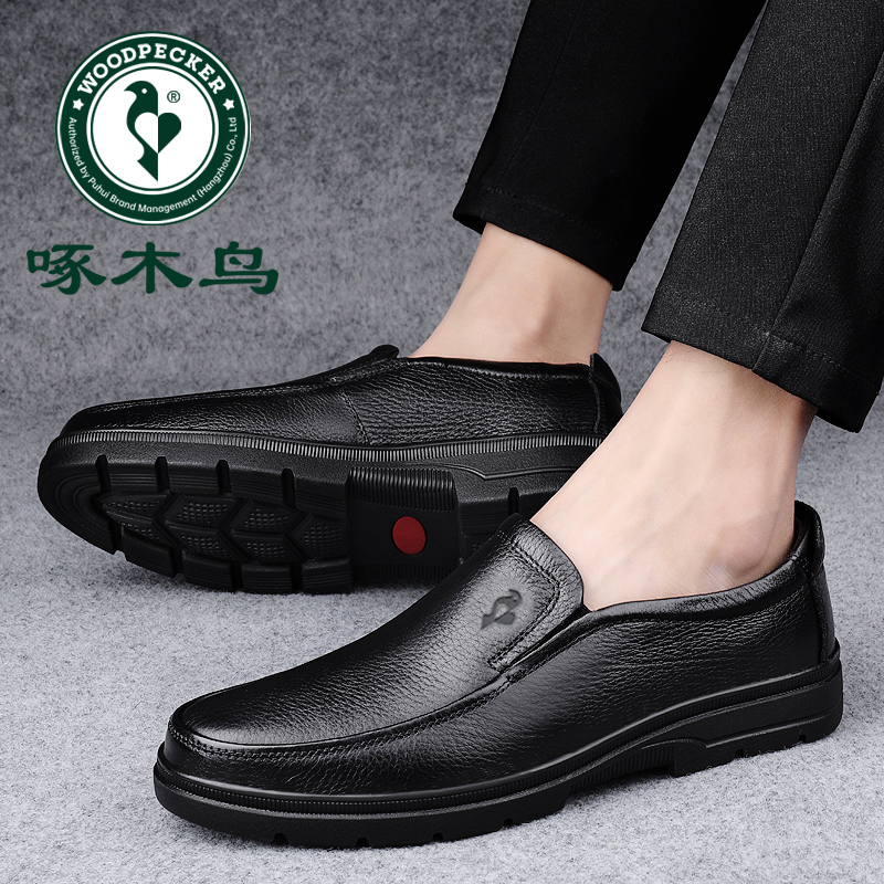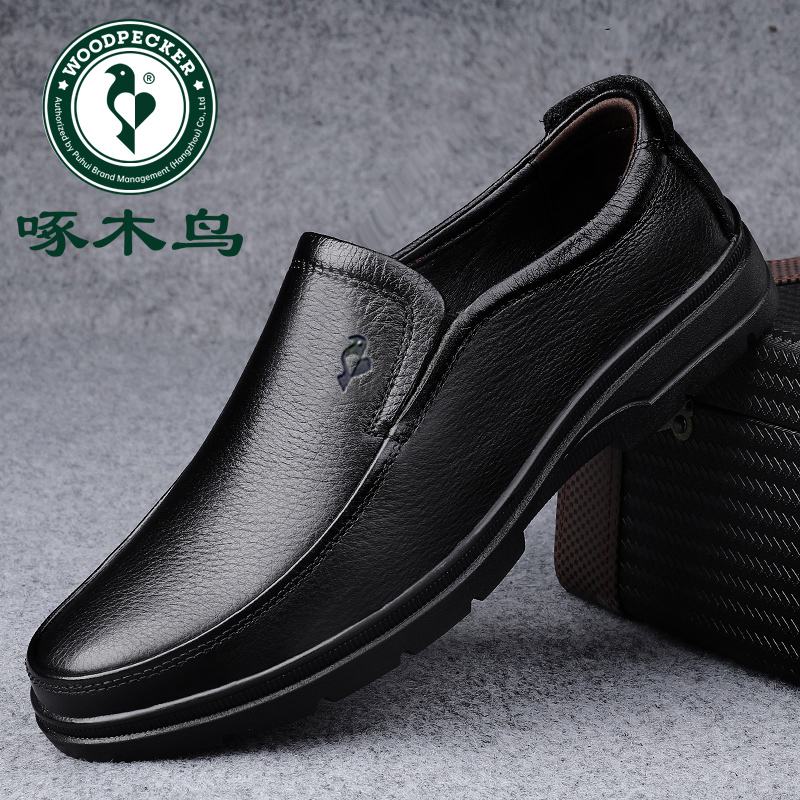 啄木鸟皮鞋男真牛皮中老年一脚蹬爸爸鞋软皮真皮高档男士休闲皮鞋