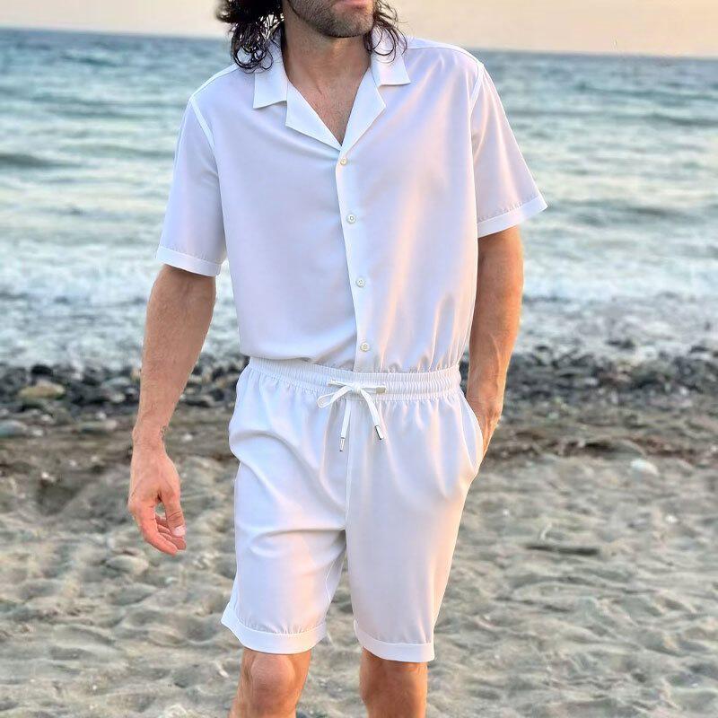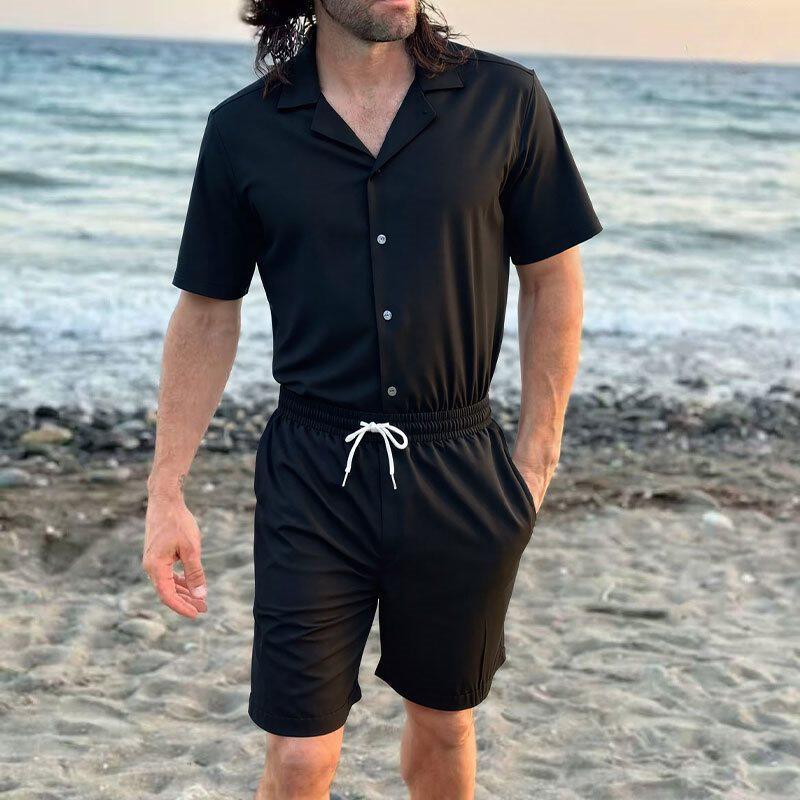 2026夏季短袖衬衫短裤透气休闲潮流两件套跨境亚马逊3D两件套男