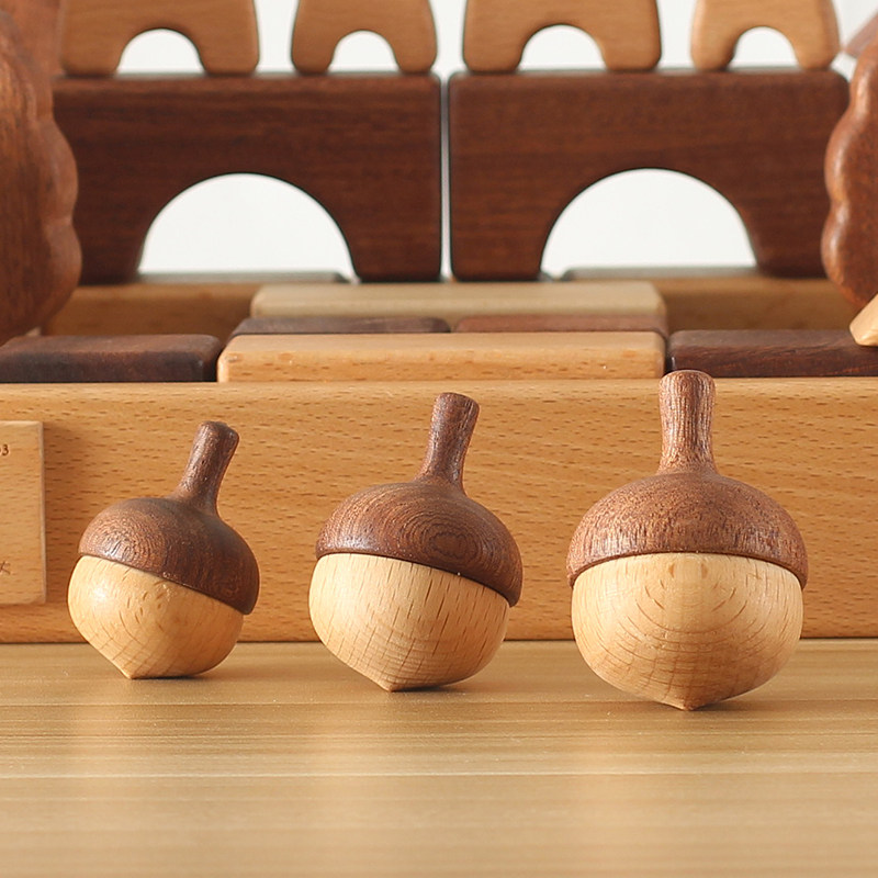 木艺爸爸 松子小陀螺手动旋转幼儿园儿童宝宝木质玩具小孩子木制