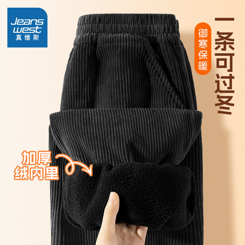 真维斯女童加绒加厚裤子冬季小女孩保暖一条过冬长裤儿童灯芯绒裤