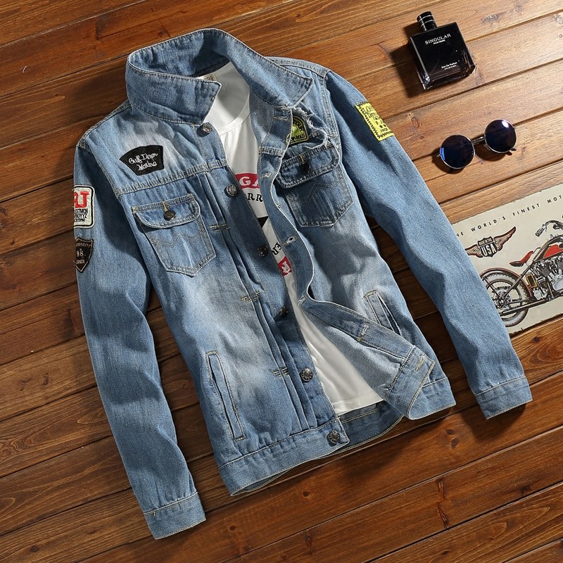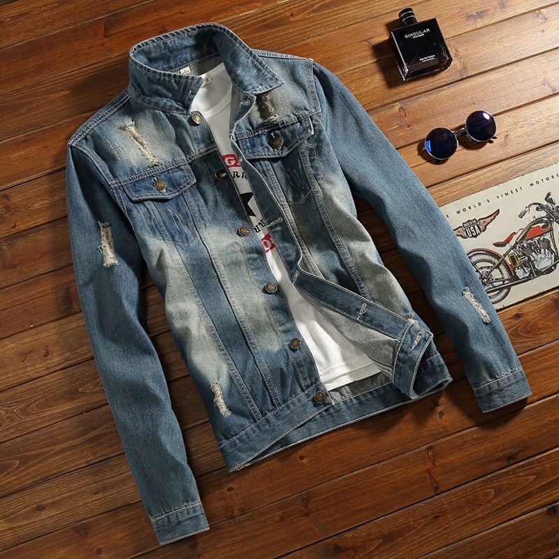 青年复古破洞牛仔夹克男士春秋季韩版休闲外套学生潮流帅气外衣服