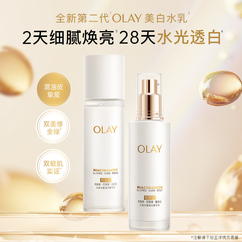 OLAY玉兰油美白乳液补水保湿抗糖化妆品护肤品二代水光官方正品