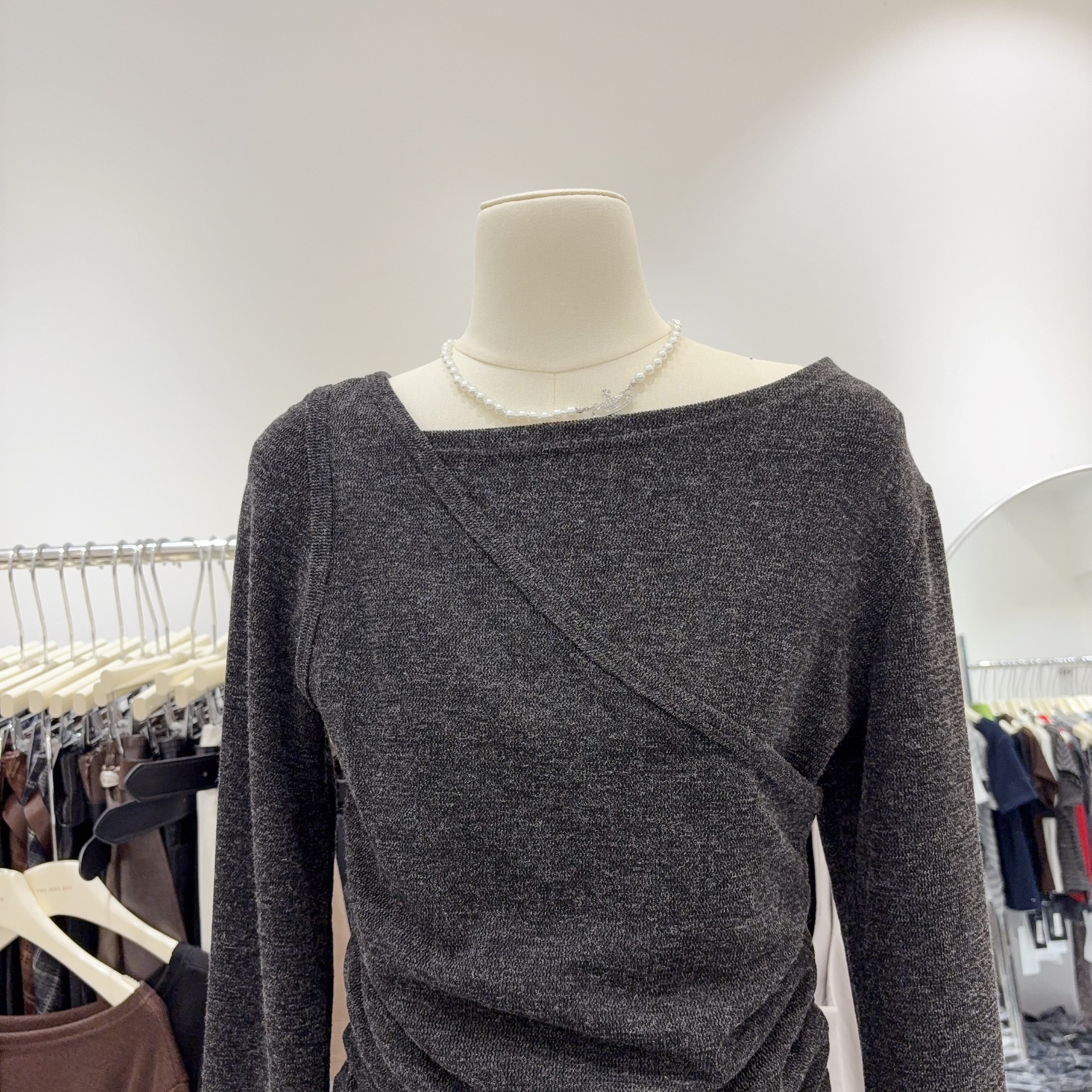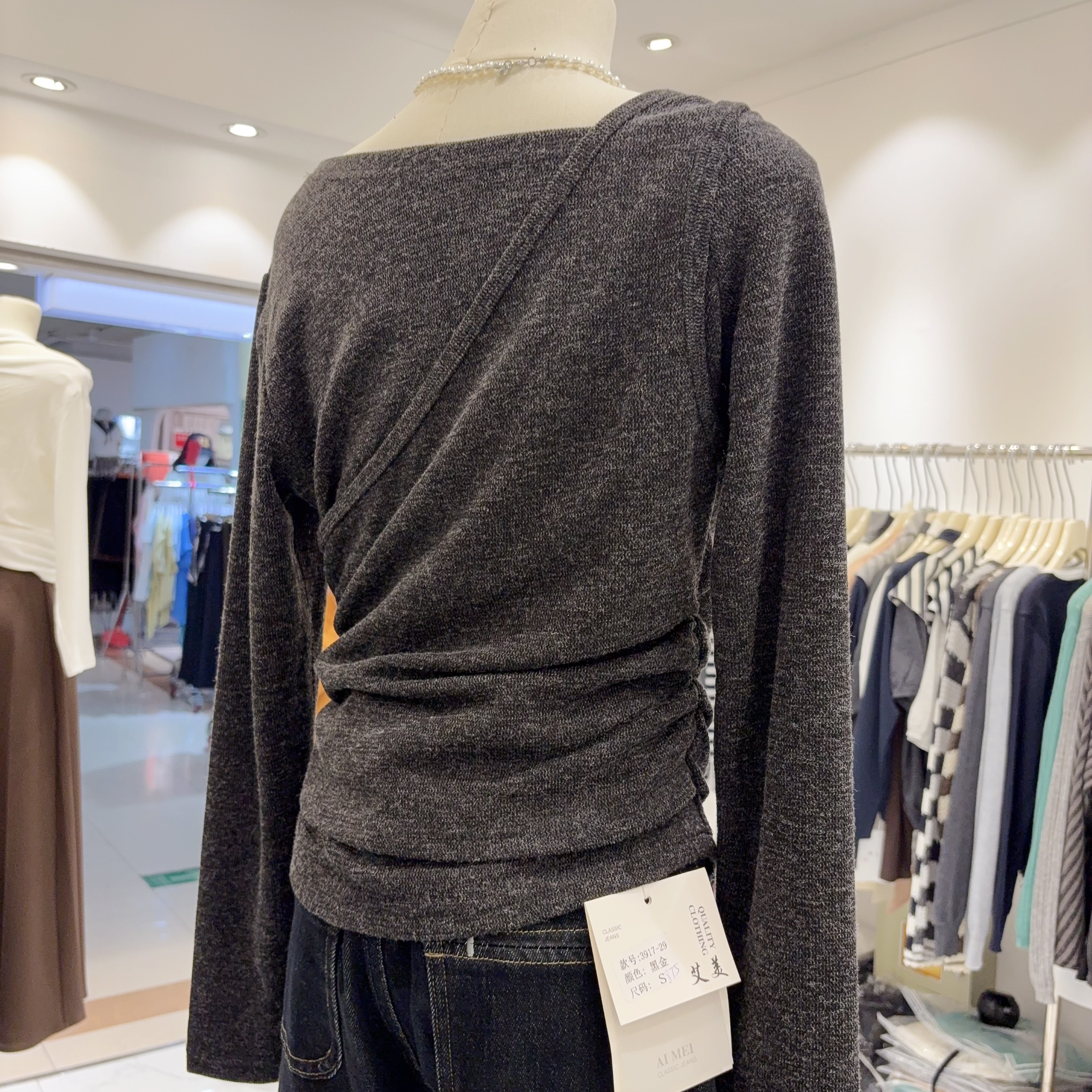 不规则长袖T恤女春秋冬新款洋气修身内搭打底衫显瘦甜辣别致上衣