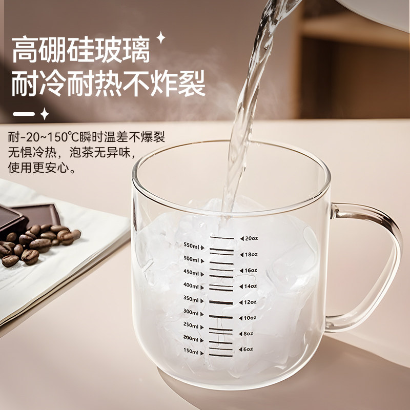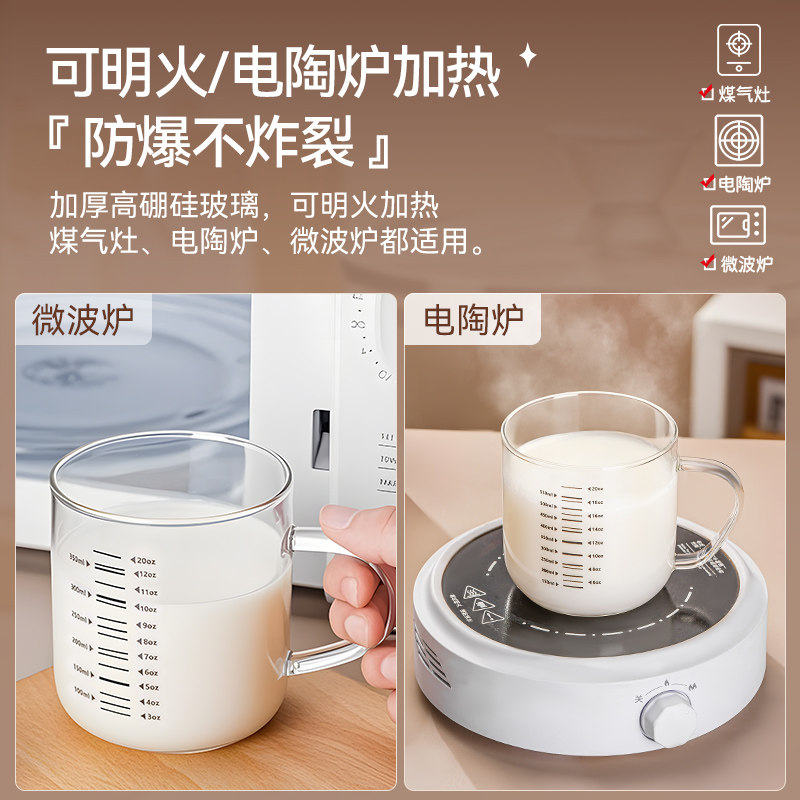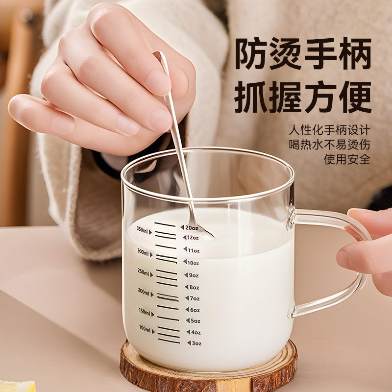 捷安玺牛奶杯微波炉可加热带刻度燕麦杯子带盖带勺早餐杯玻璃水杯