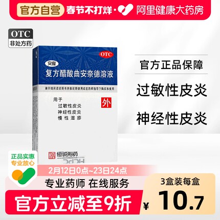 【安隆】复方醋酸曲安奈德溶液10ml*1瓶/盒【3盒装】神经性皮炎过敏性皮炎湿疹慢性