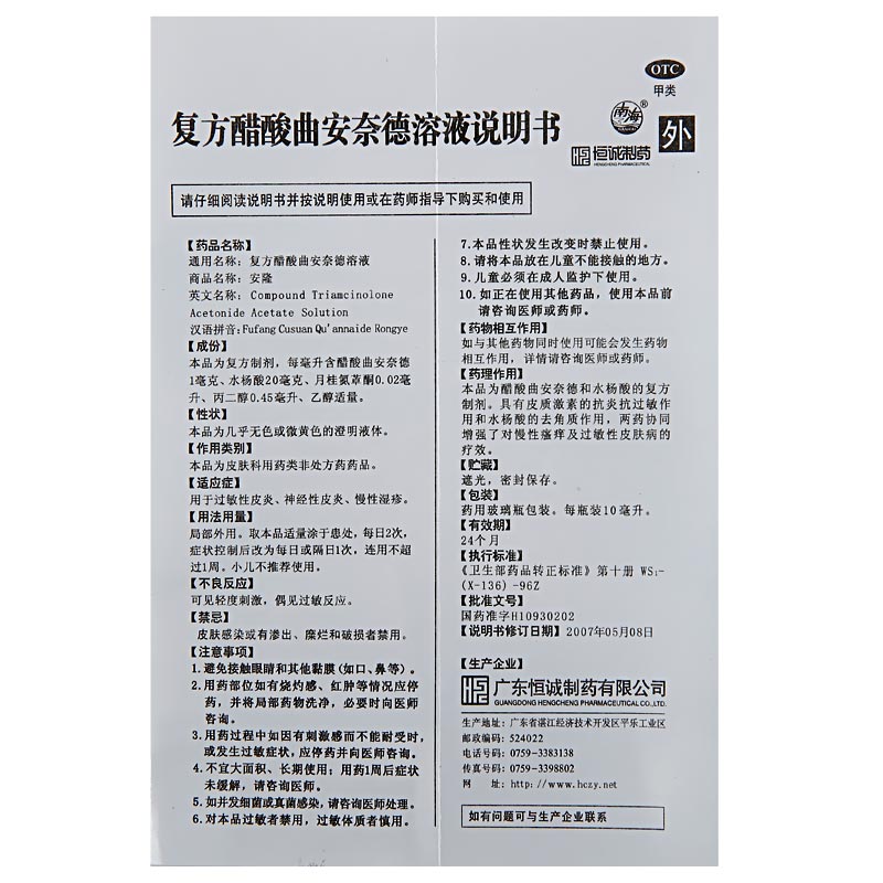 安隆复方醋酸曲安奈德溶液药房神经性皮炎旗舰店药水湿疹涂膜官方