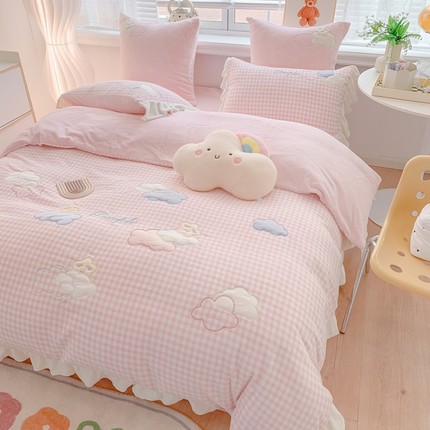 可爱风云朵牛奶绒四件套冬季加厚珊瑚绒被套贴布绣小女孩床上用品