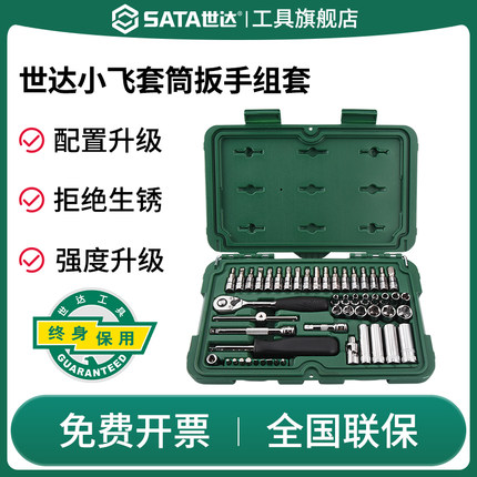 SATA世达小飞汽修套筒组合工具箱套装快速棘轮扳手汽车维修专用