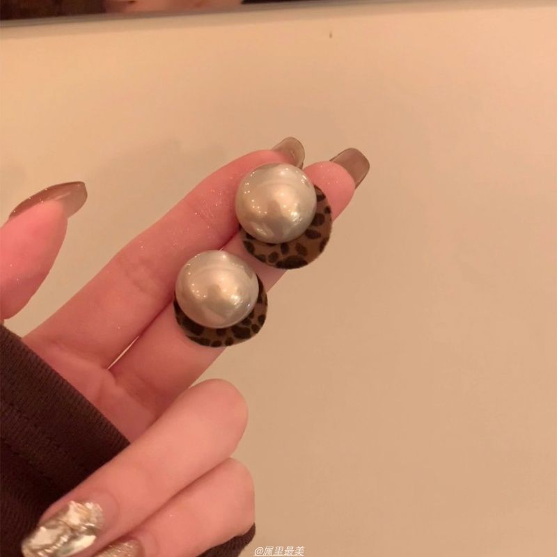 复古美拉德豹纹珍珠耳环女轻奢高级感气质耳钉独特漂亮秋冬耳饰