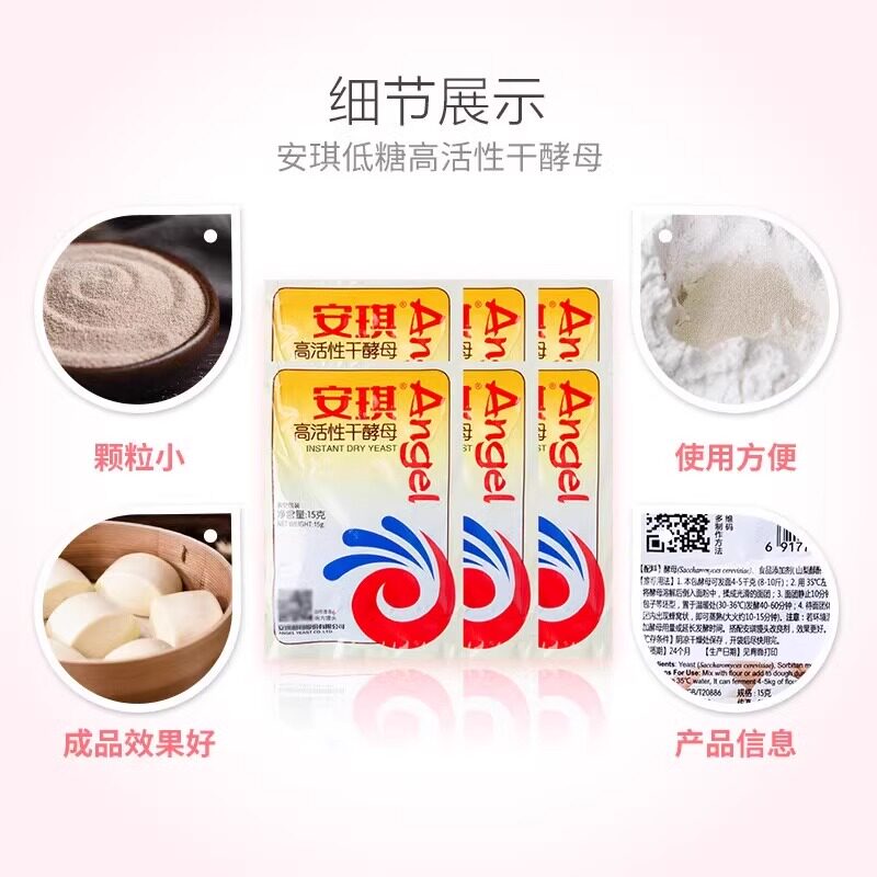 安琪面包酵母耐高糖和低糖高活性干酵母面包机用酵母粉烘焙原料5g