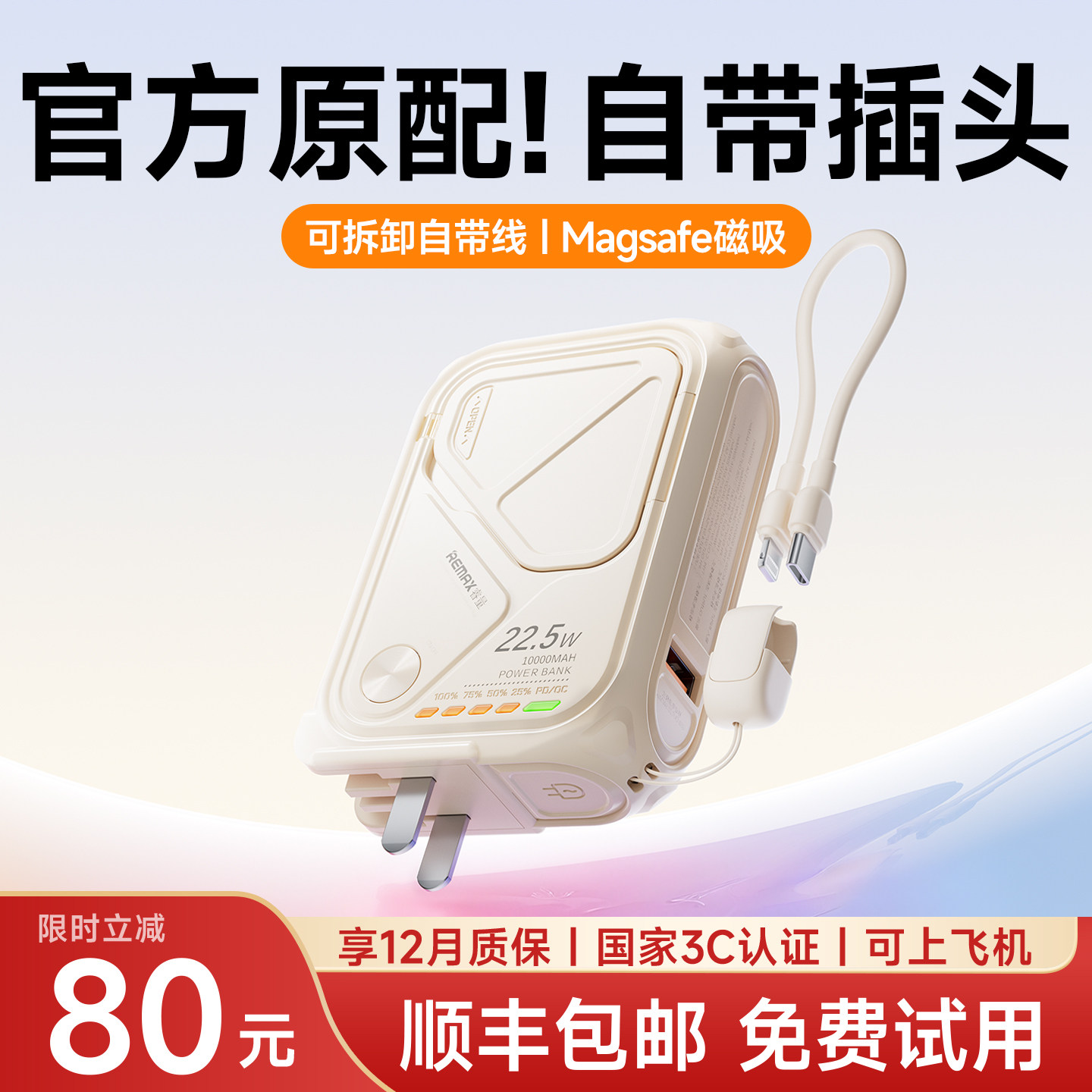 【可上飞机】自带插头磁吸充电宝