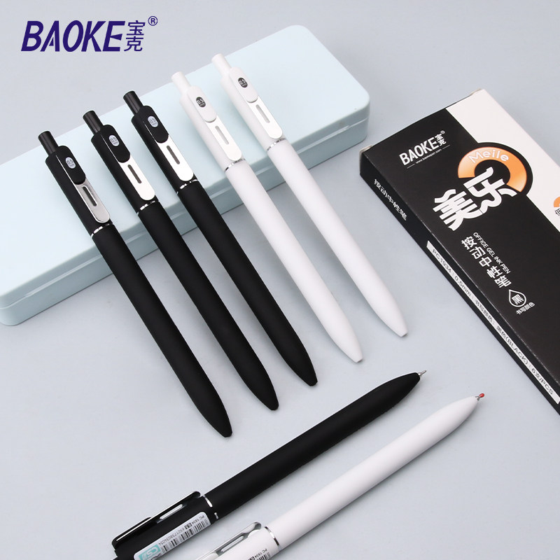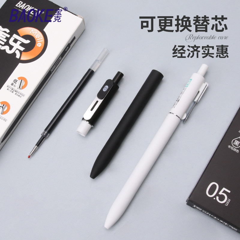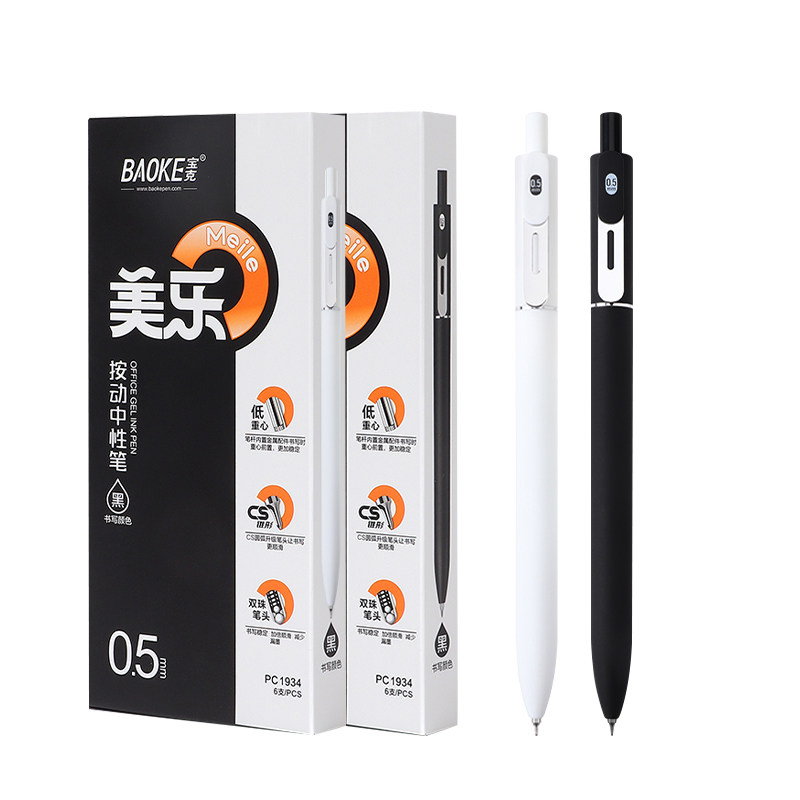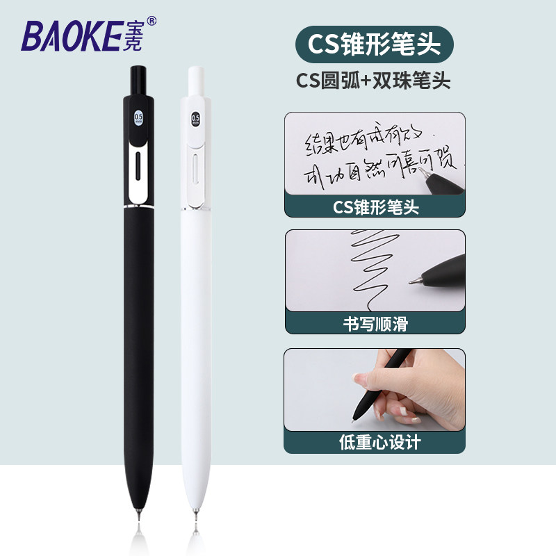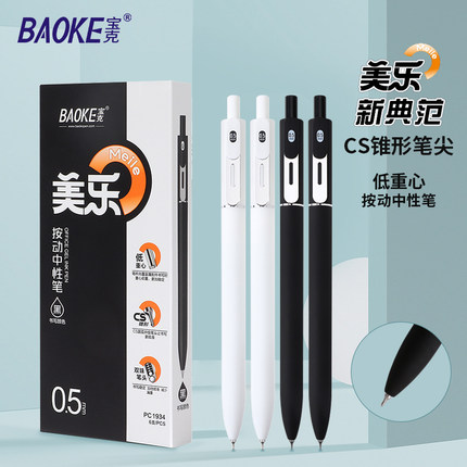 宝克新款美乐按动中性笔黑色高颜值重手感CS锥形双珠头笔尖刷题笔考试学生用笔办公用圆珠笔水笔