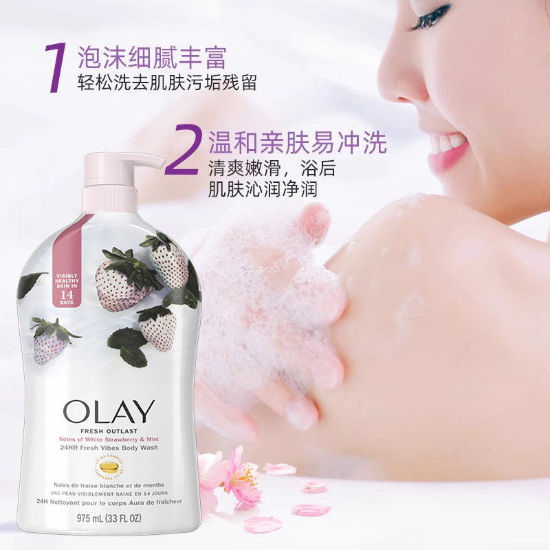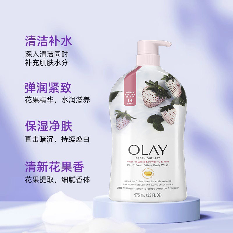 Olay玉兰油烟酰胺沐浴露白草莓加薄荷补水男女秋冬润肤【部分临期