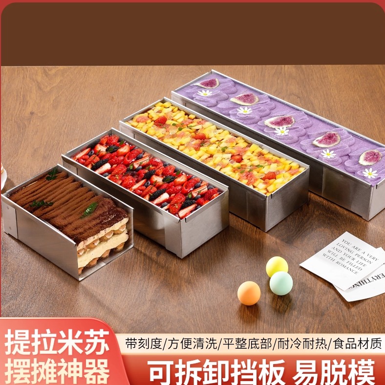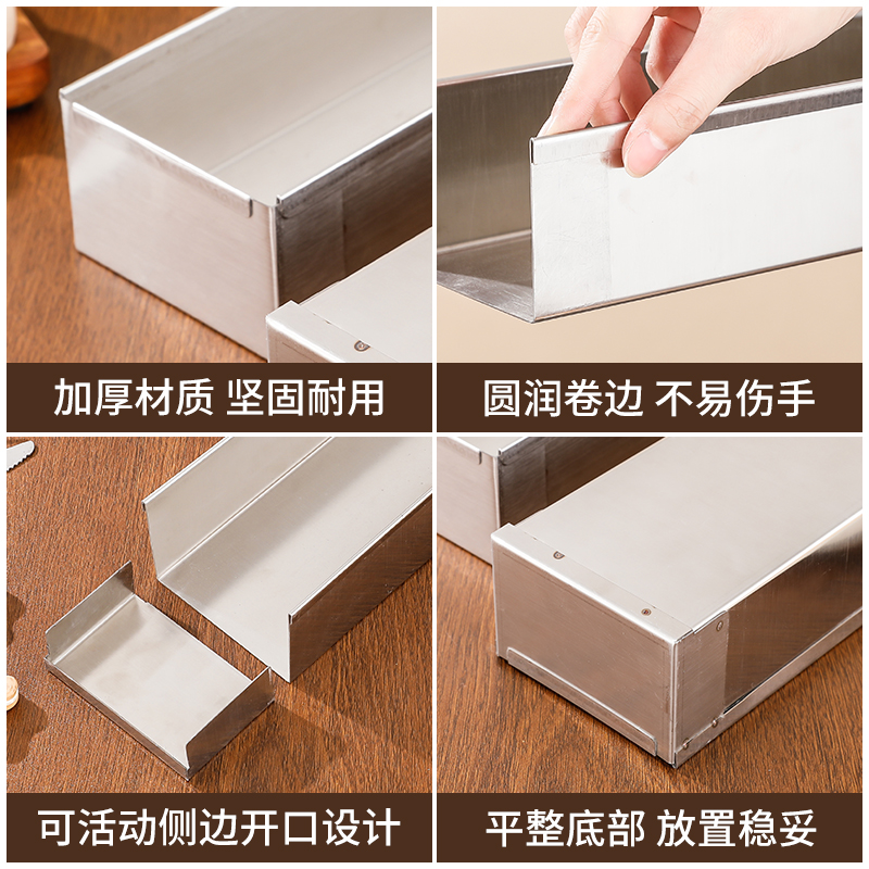 4种尺寸网红提拉米苏模具加刻度不锈钢带盖长方形盒蛋糕烘焙托盘