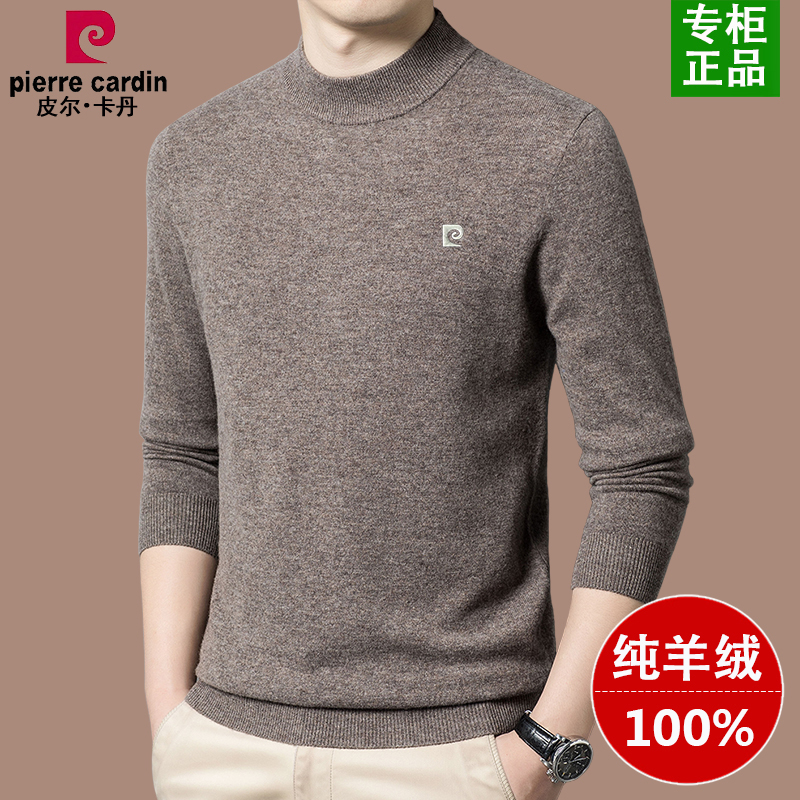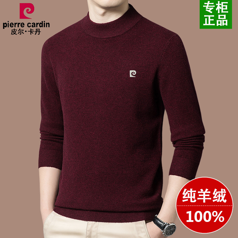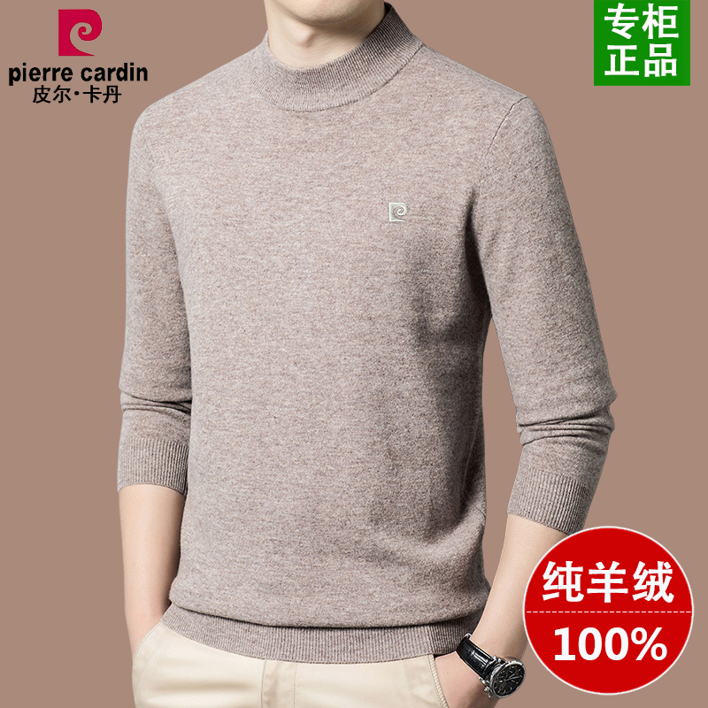 皮尔卡丹100%纯羊绒衫男冬季厚款半高领毛衣中年打底爸爸装羊毛衫