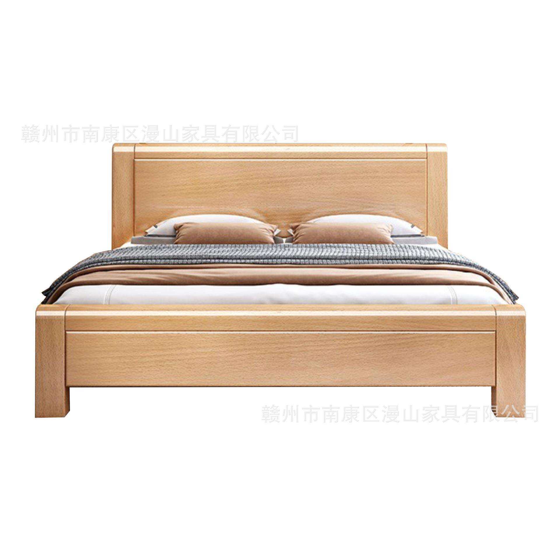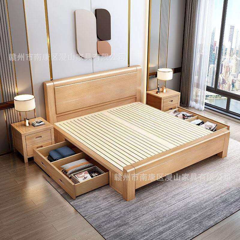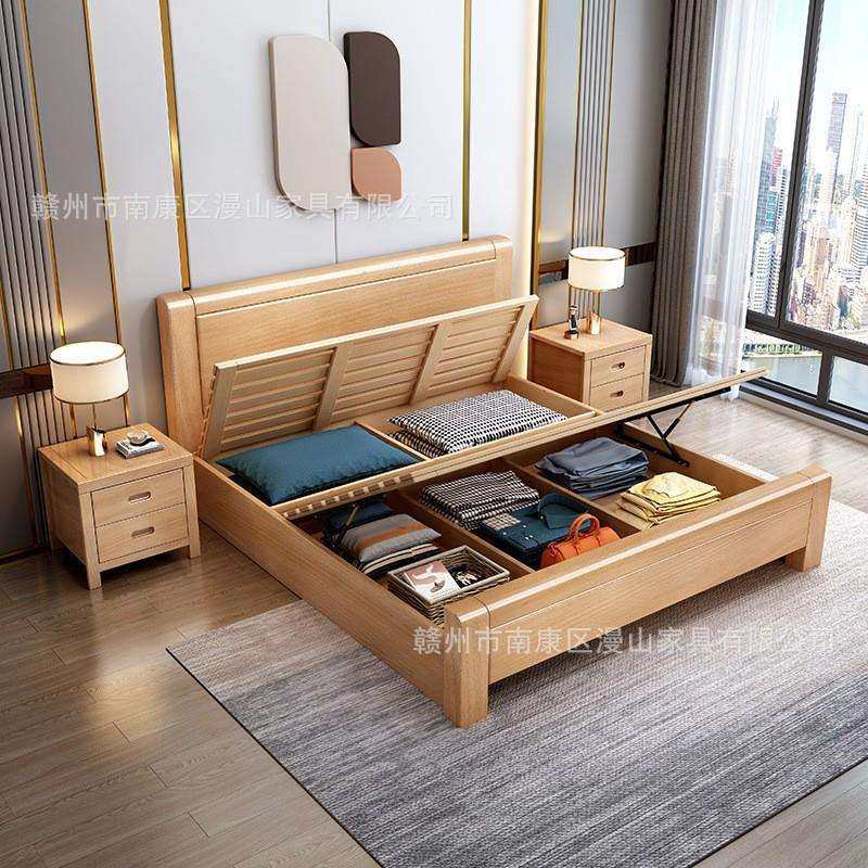 原木风榉木1.8M全实木主卧双人床小户型1.2M单人床高箱储物实木床