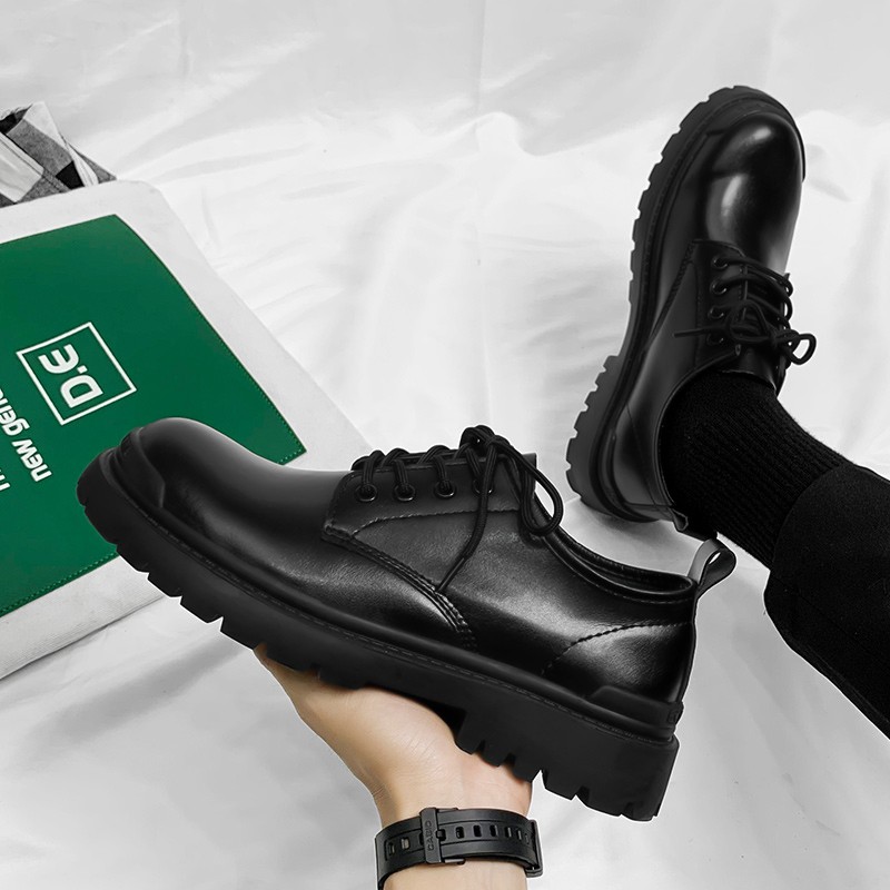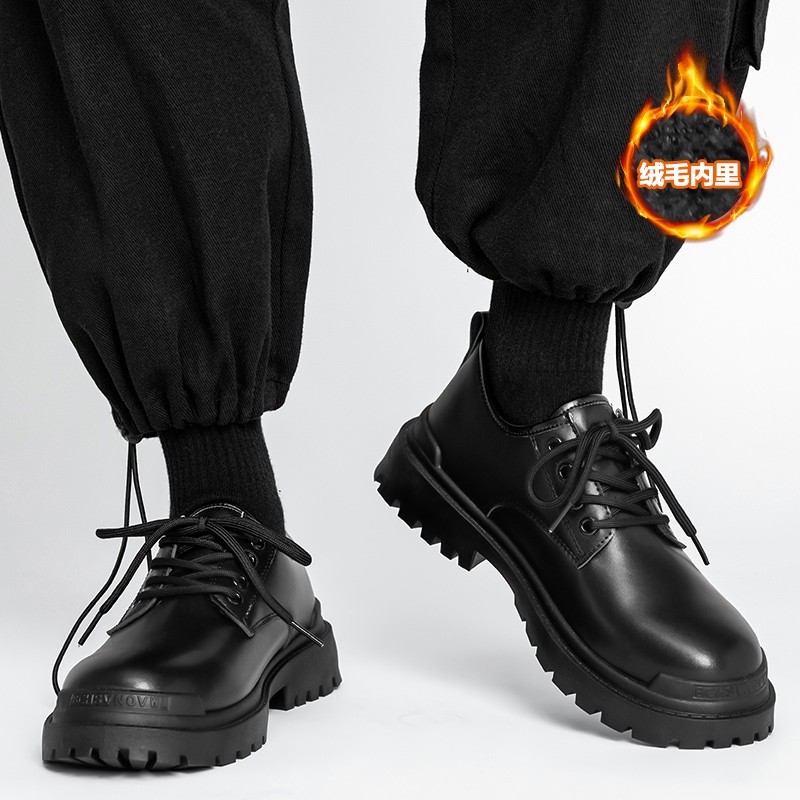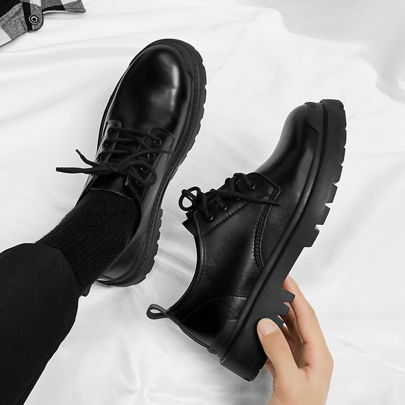 大头皮鞋男士男生厨房防滑防水休闲厚底马丁靴男鞋子英伦风工装鞋