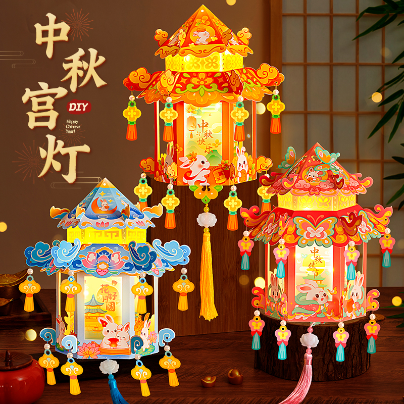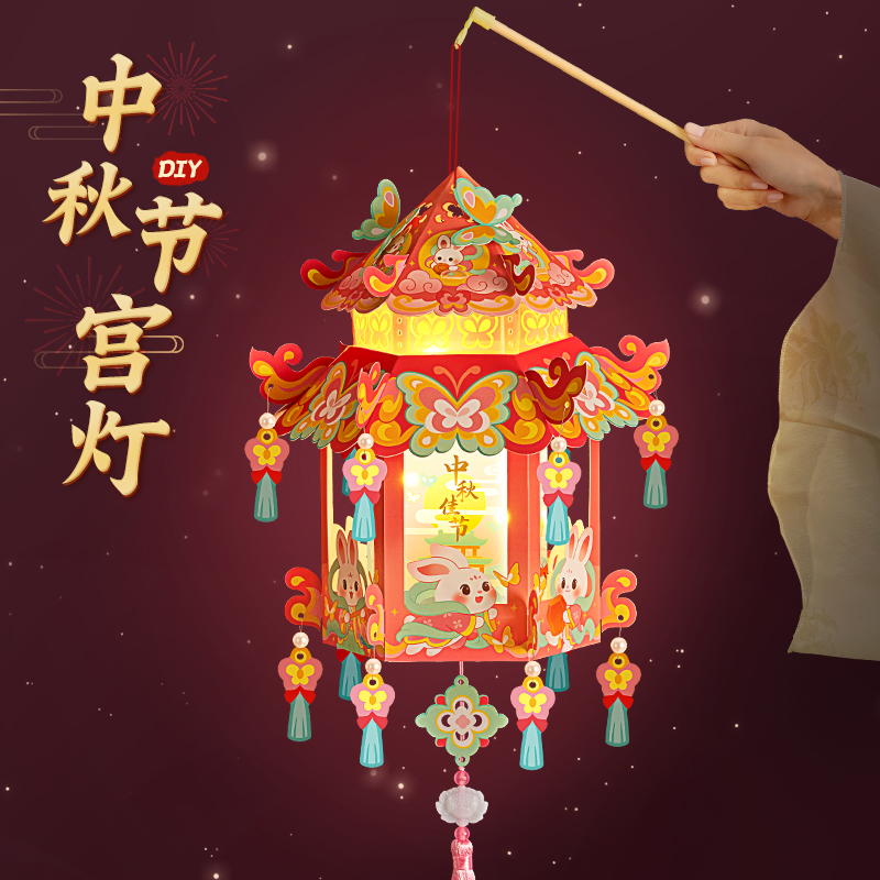 中秋节手工diy灯笼2025新款儿童手提宫灯幼儿园制作材料兔子花灯