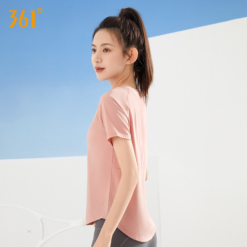 361瑜伽服女士薄款夏季网纱t恤跑步透气健身衣服粉色运动短袖上衣