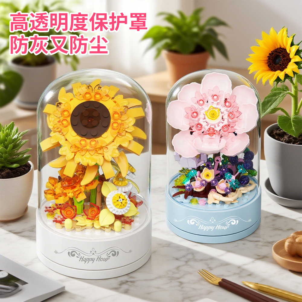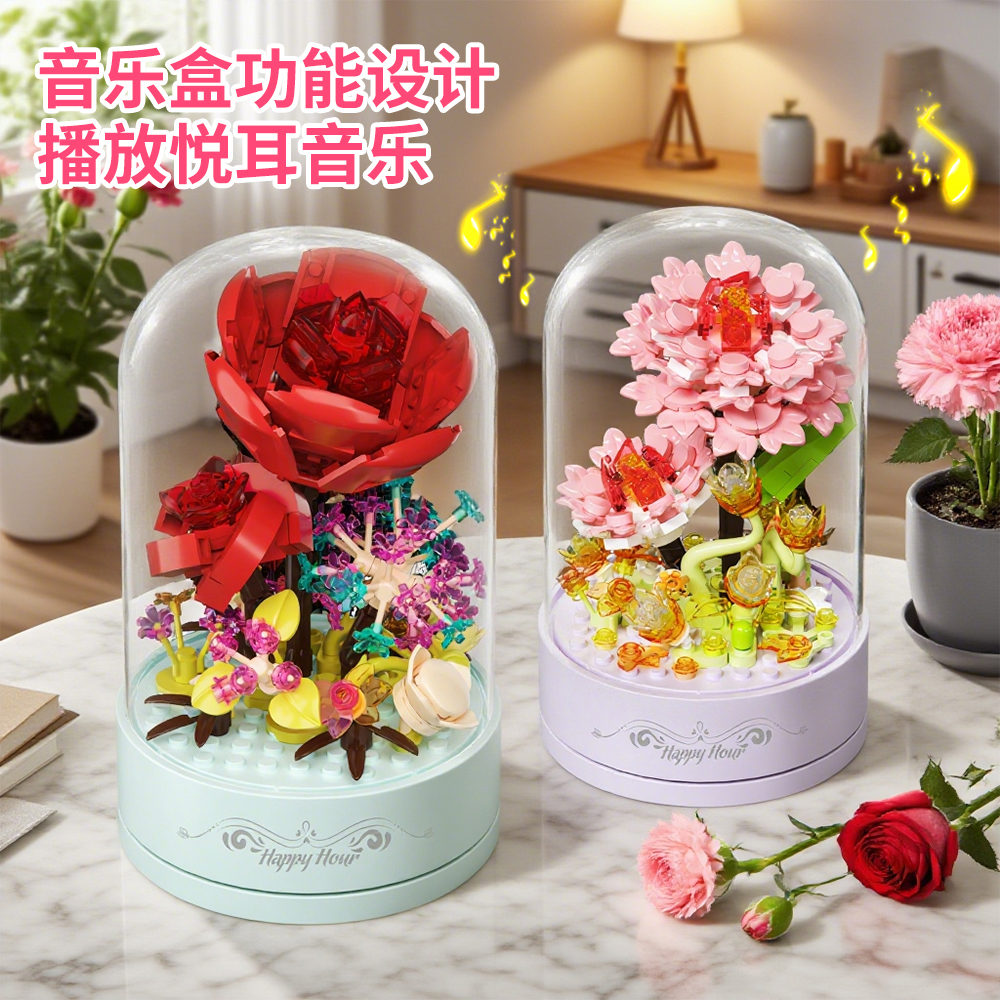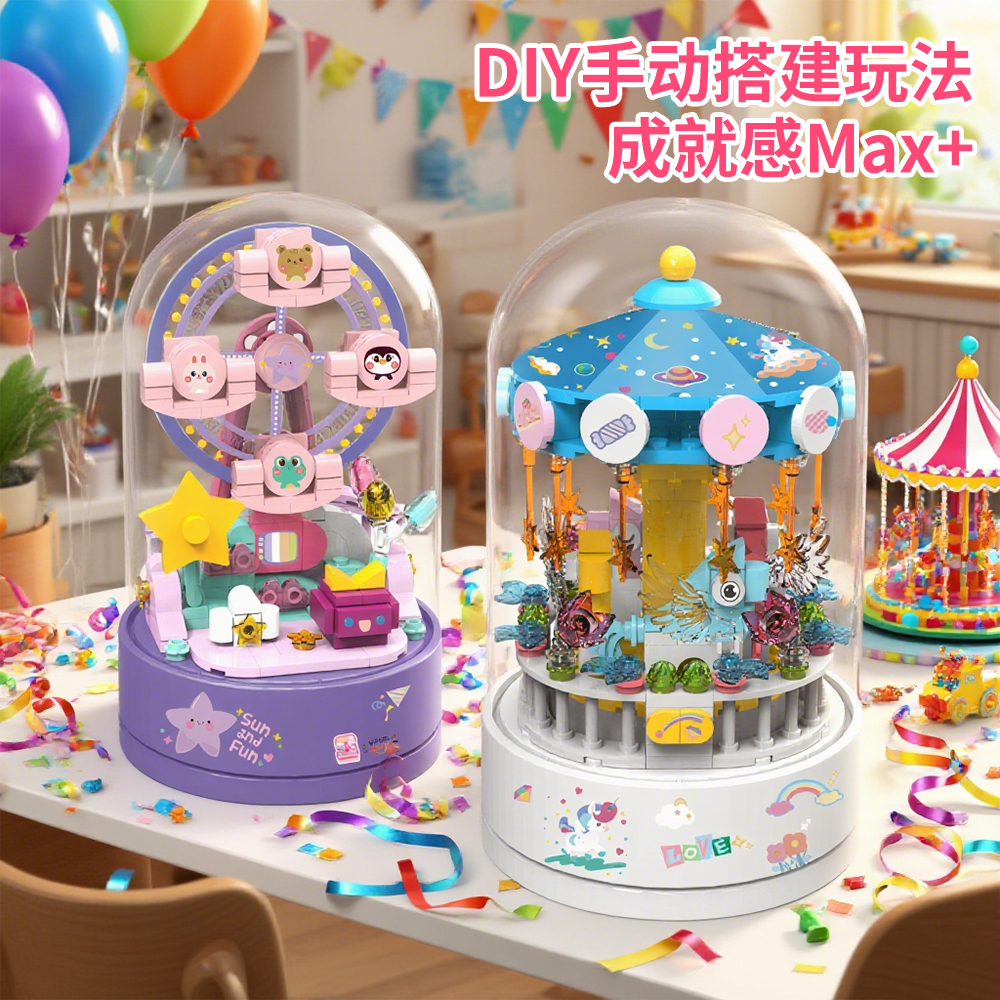 新款积木音乐盒拼装玩具女孩益智拼装积木玩具摆件圣诞节生日礼物