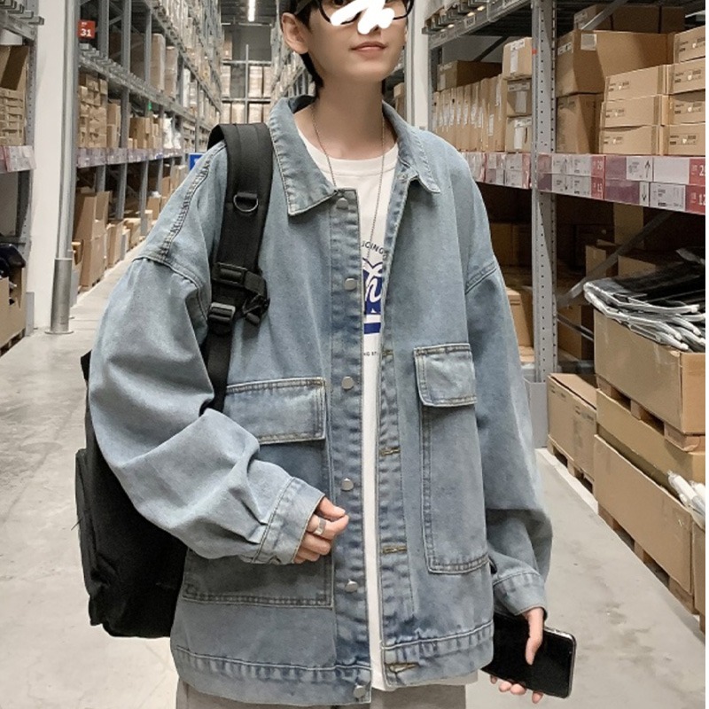 春秋季牛仔外套男宽松韩版潮流痞帅港风ins百搭情侣男女工装夹克
