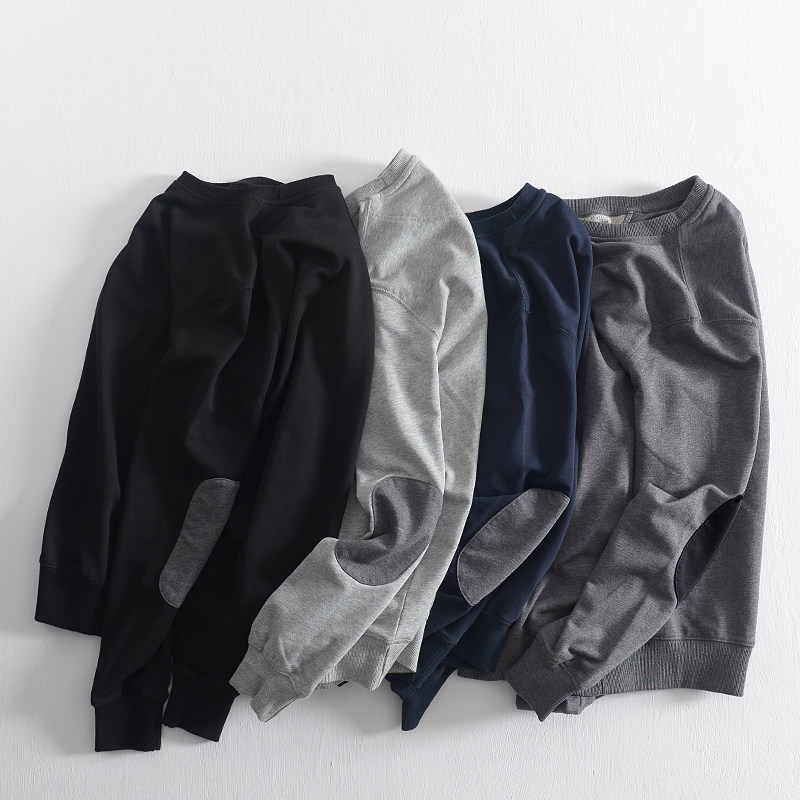 秋装男士宽松圆领套头运动卫衣毛圈日系休闲简约纯色长袖外套潮