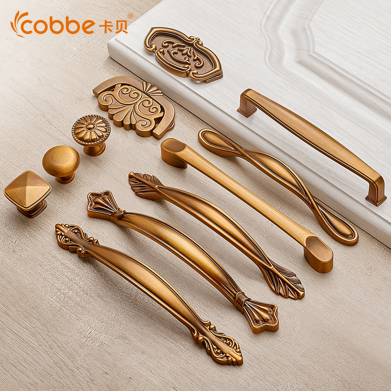 卡贝欧式黄古铜抽屉衣柜拉手中式柜门橱柜隐形门把手现代简约单孔