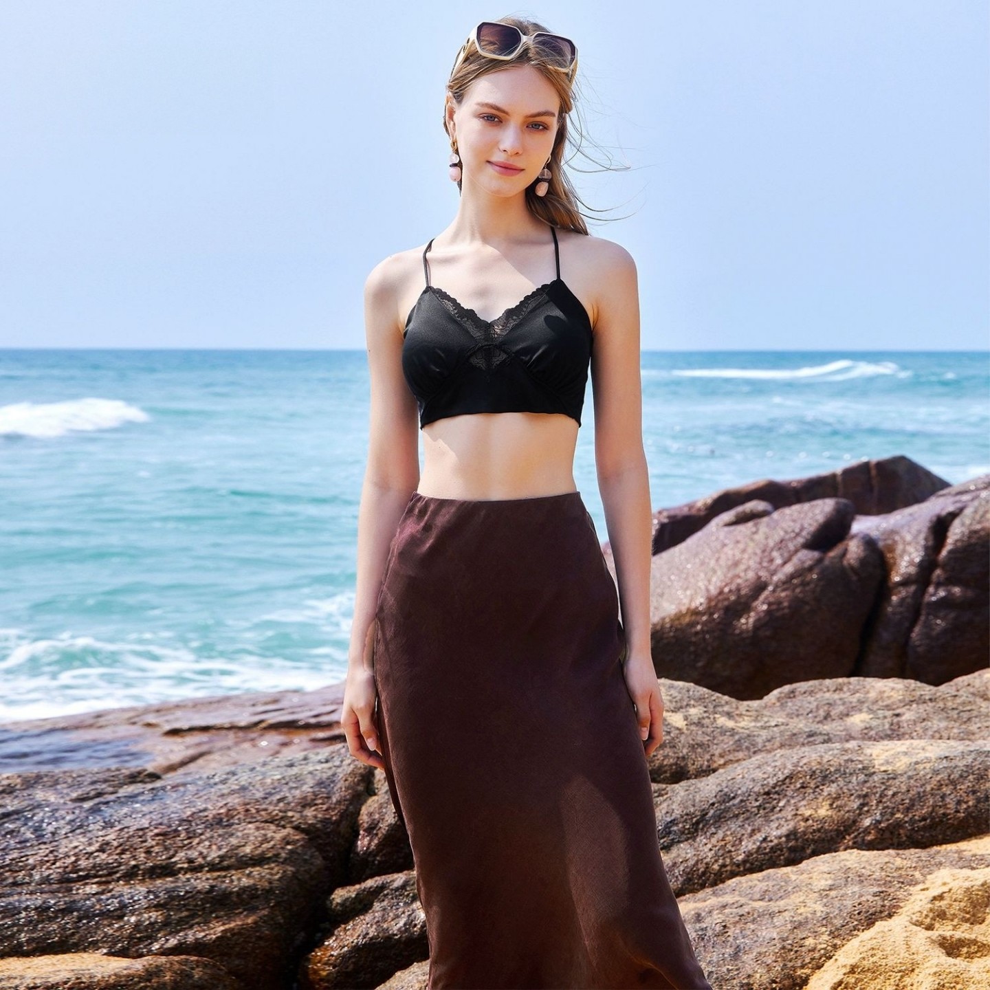 Muse真丝内衣蕾丝法式赴约性感细肩吊带美背文胸女桑蚕丝里可外穿