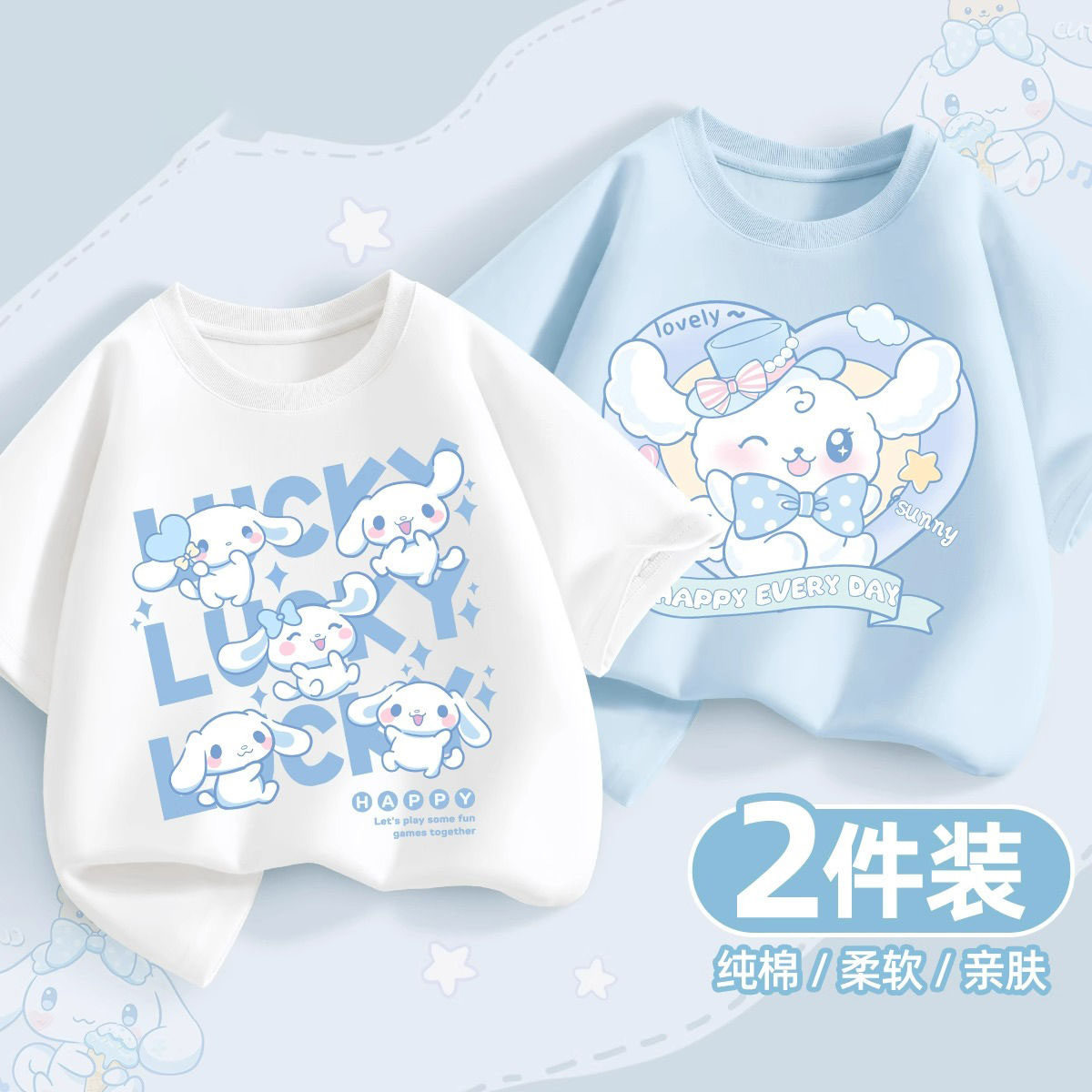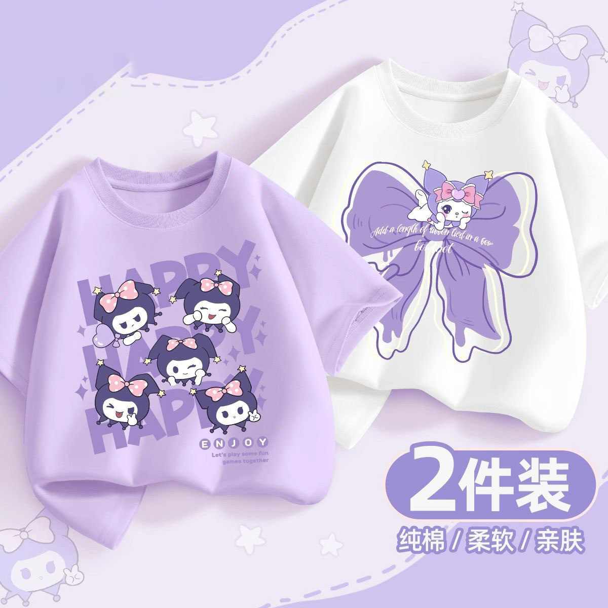 2024新款夏季女童短袖100%纯棉中大童洋气T恤宽松上衣时髦打底衫