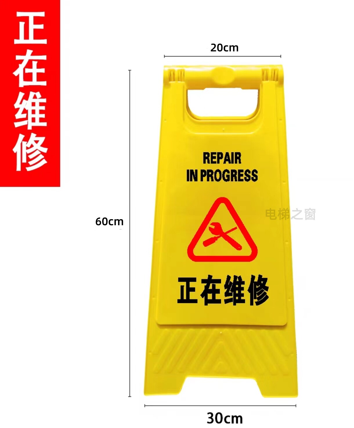 电梯维修指示牌 保养中 A字牌 三角牌 警示牌 护栏 围挡 小心地滑