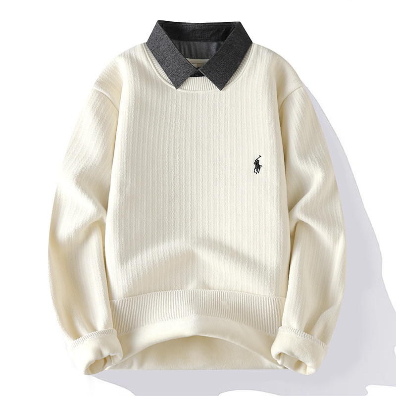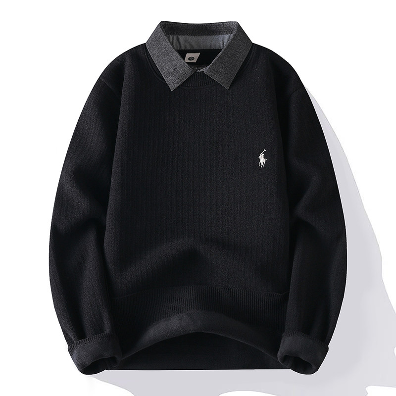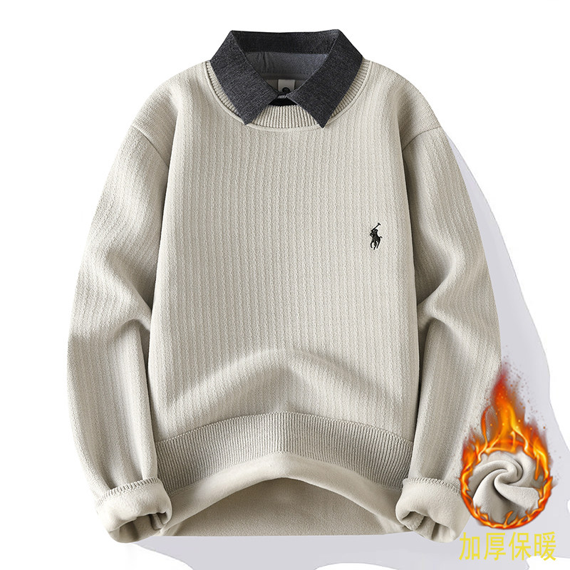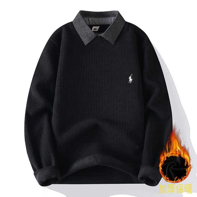 秋冬款毛线衣冬季假两件衬衫加绒针织衫男士加厚打底针织保暖上衣