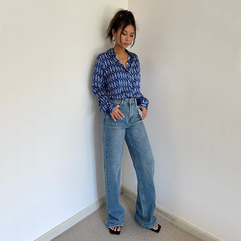 韩国时尚高腰弹力窄版牛仔裤女2024显大长腿阔腿裤宽松直筒拖地裤