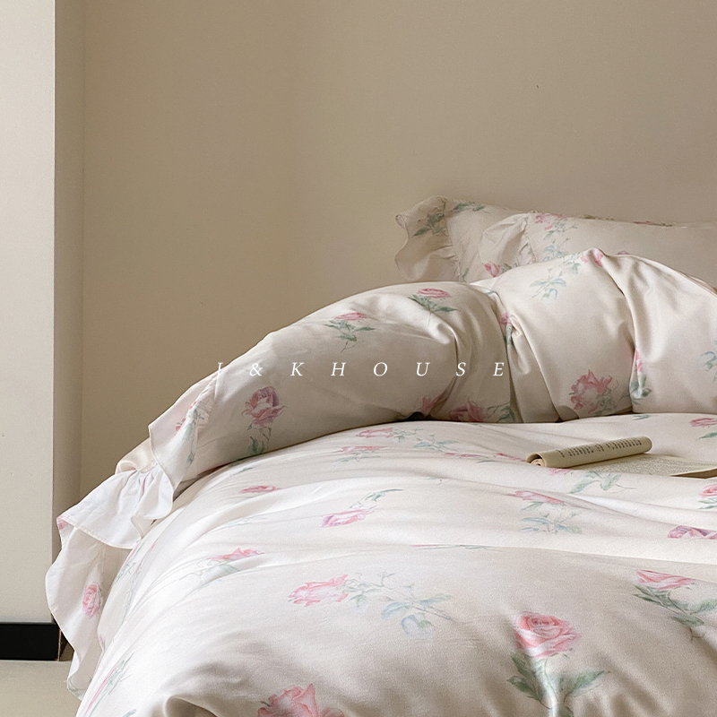 四件套天丝棉磨毛法式玫瑰印花