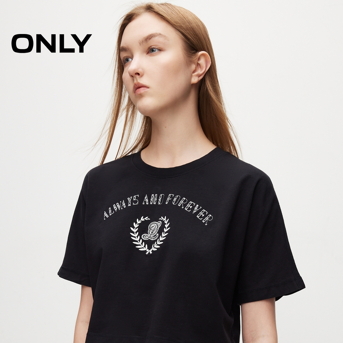 【ONLY奥莱】夏季百搭刺绣宽松圆领短款正肩纯棉T恤女
