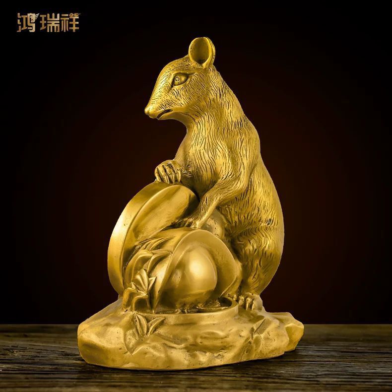室内铜鼠十二生肖鼠老鼠金鼠招财家居客厅风水装饰品吉祥物