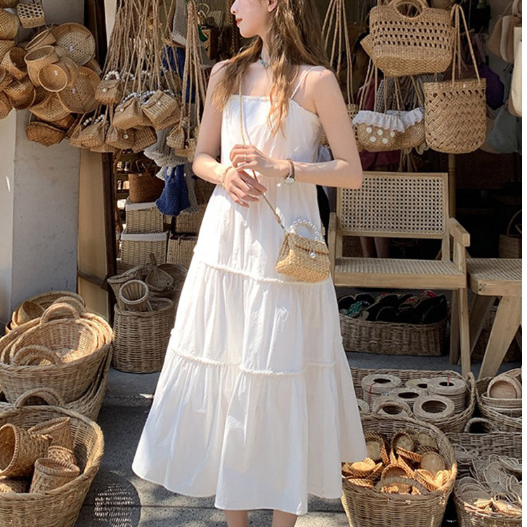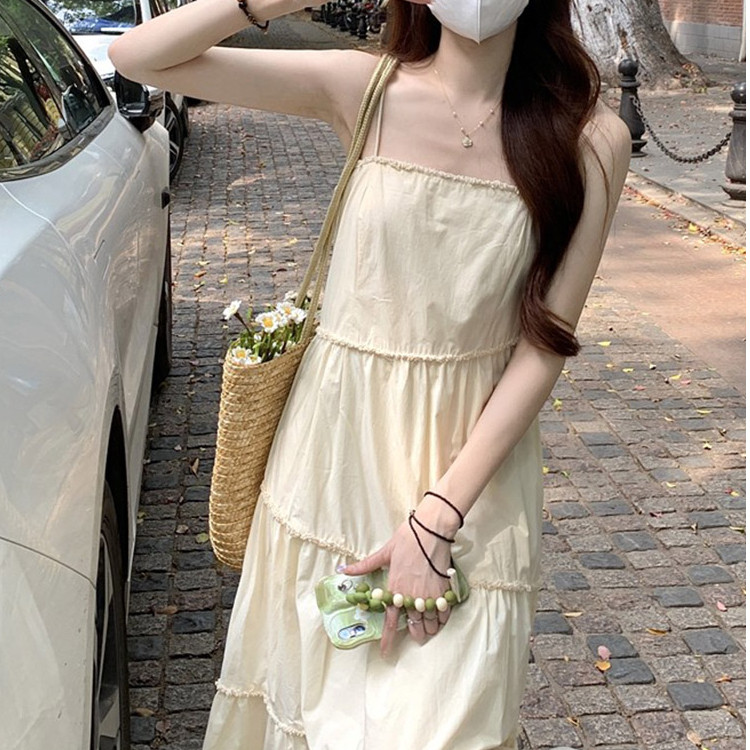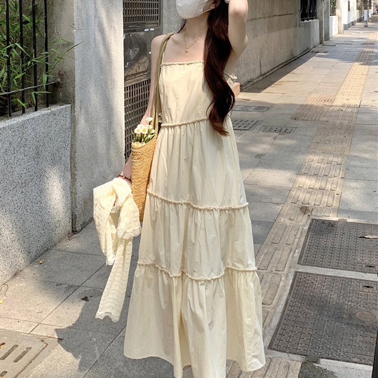 法式吊带连衣裙子女夏季2025新款温柔风初恋浪漫复古穿搭气质长裙